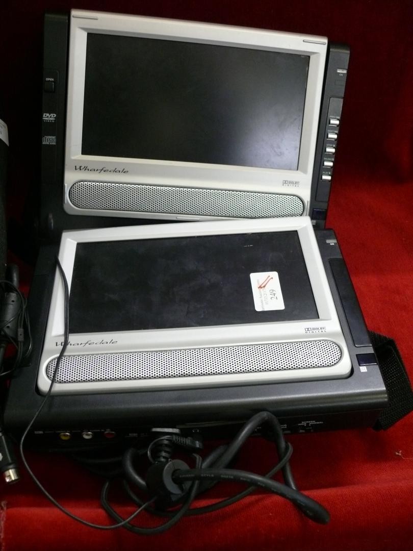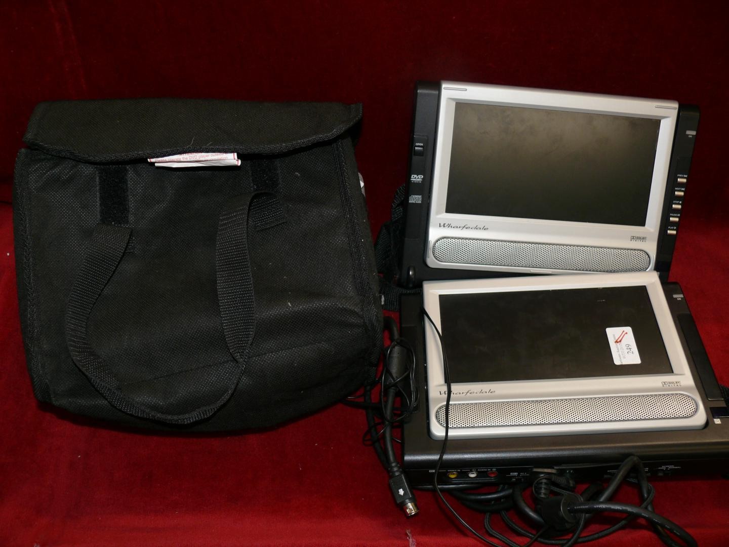WHARFEDALE IN CAR DVD PLAYER WITH 2 SCREENS IN CARRY CASE