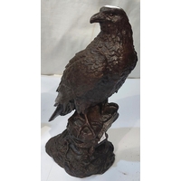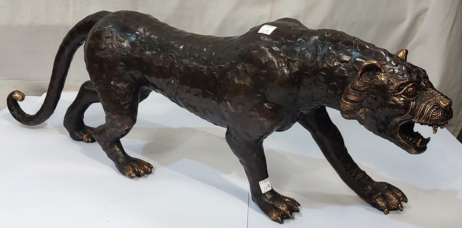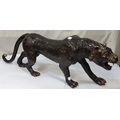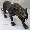 Bronzed sculpture of a big cat in a stalking pose, height 23cm.