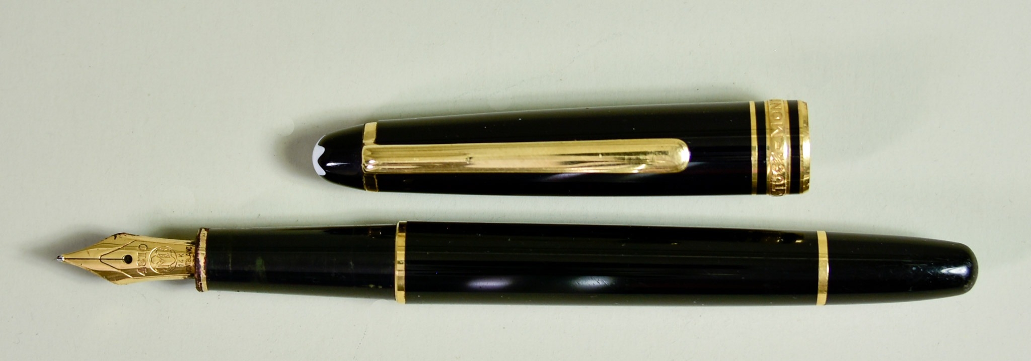 A Montblanc "Meisterstuck" Fountain Pen, in black resin with gold band and clip detailing, nib marked 14k, 4810