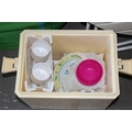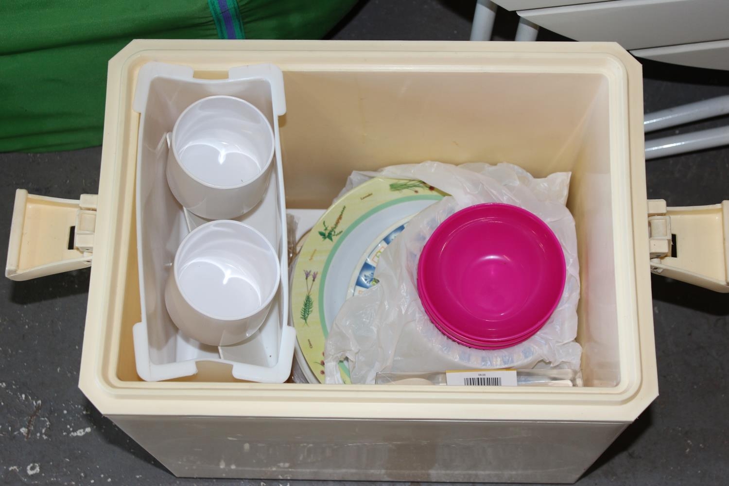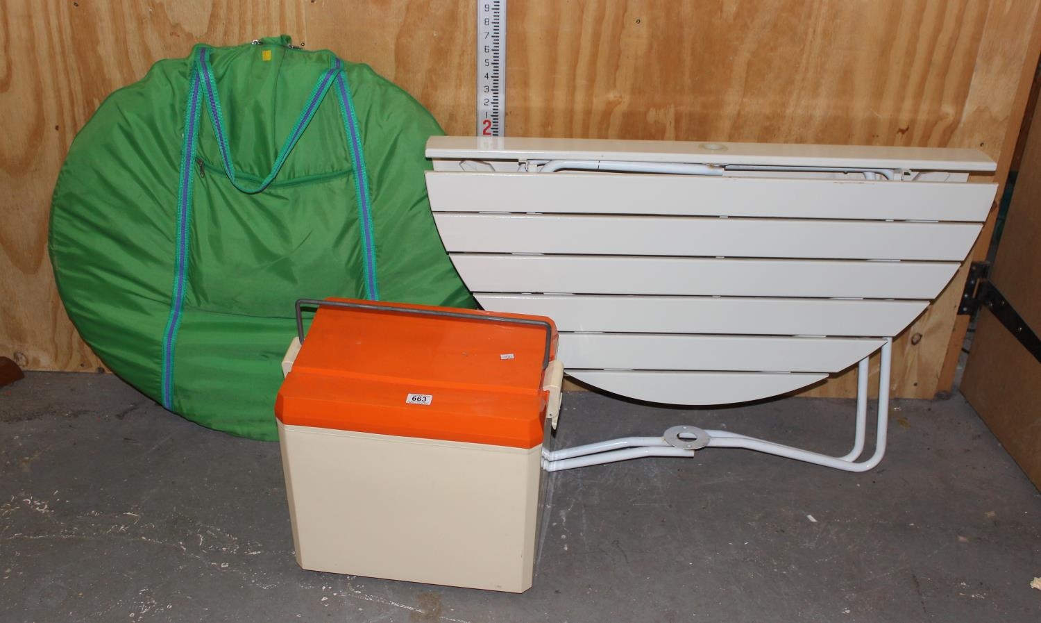 Retro cool box & contents, pop up tent & folding picnic table