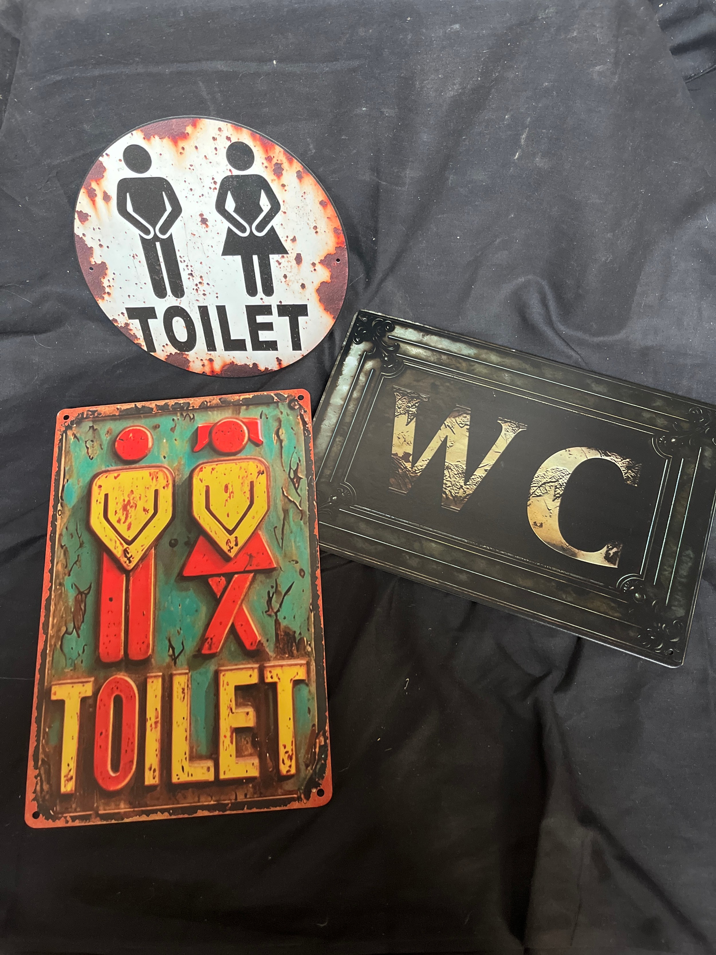 Reproduction Tin Plate Toilet Signs2@ 12 X 8” 1 @ 8” Diameter