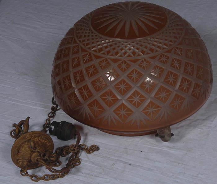 Quality 1930's orange cut glass ceiling shade -