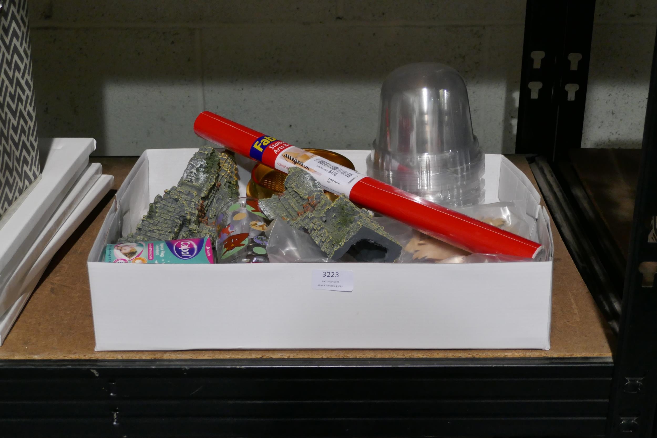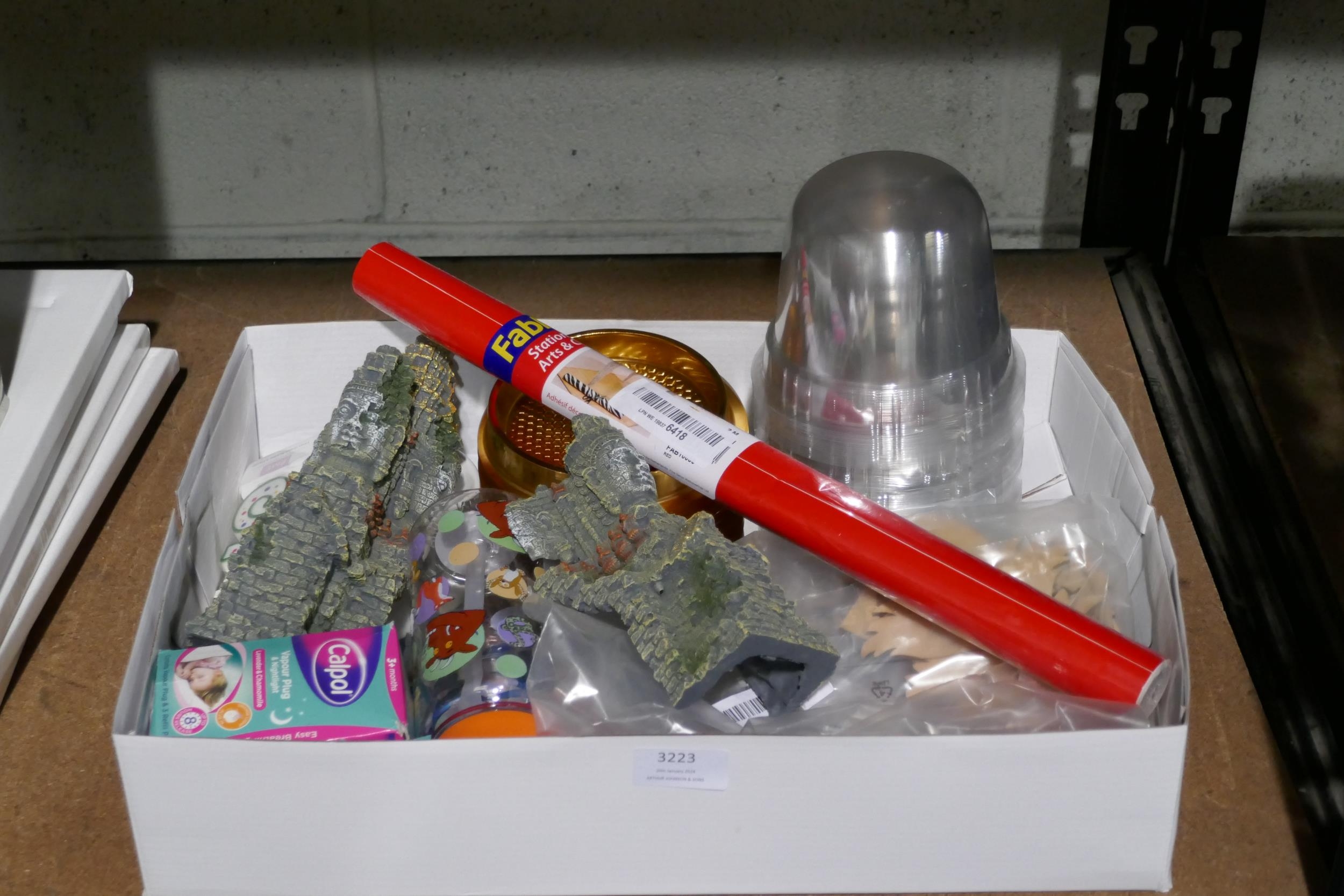 Assorted homewares incl: takeaway containers, party supplies, art supplies & Calpol vapour plug *This lot is subject to vat
