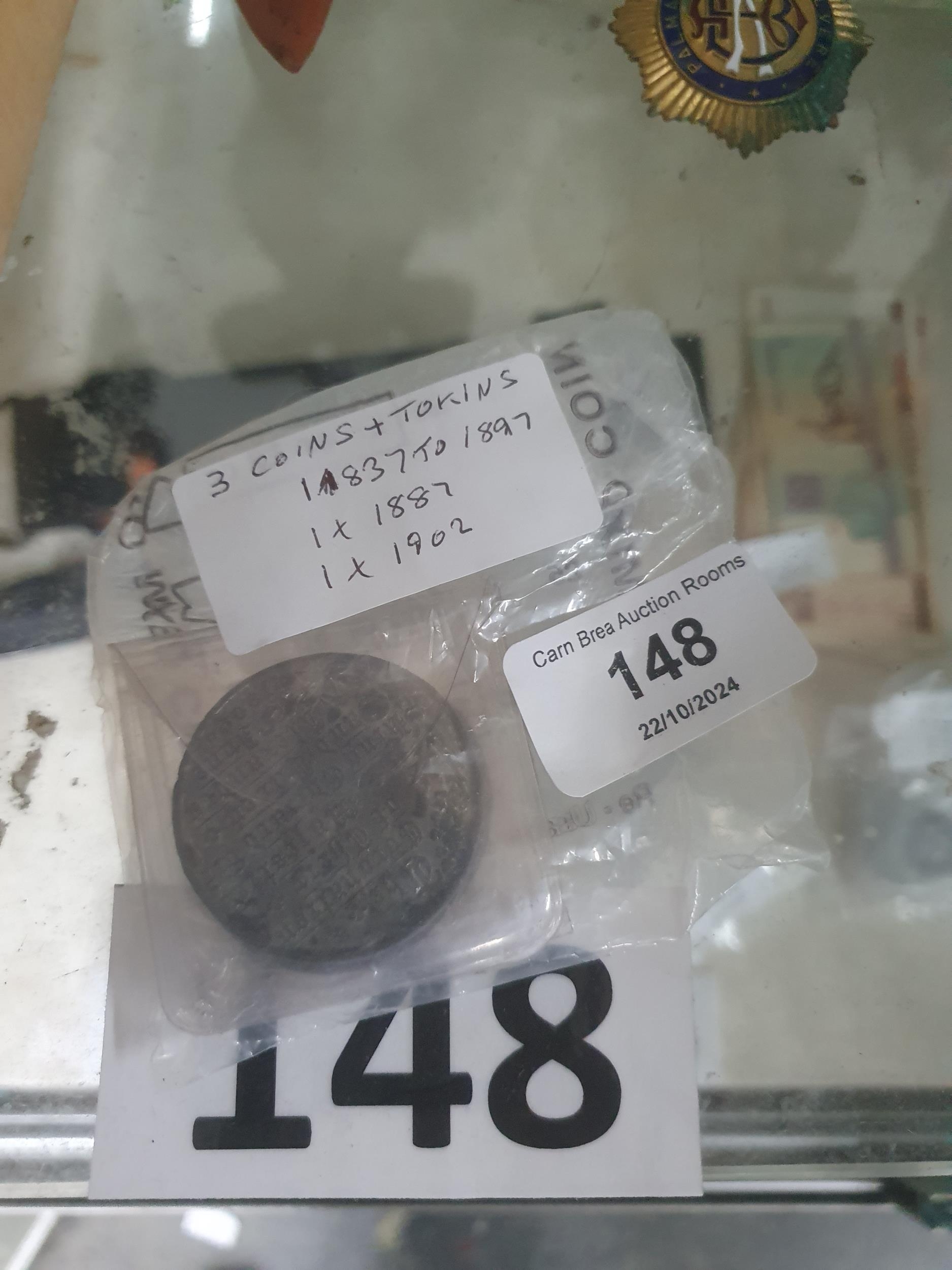bag 3 coins & tokens 1 x 1837 1 x 1887 1x 1902