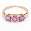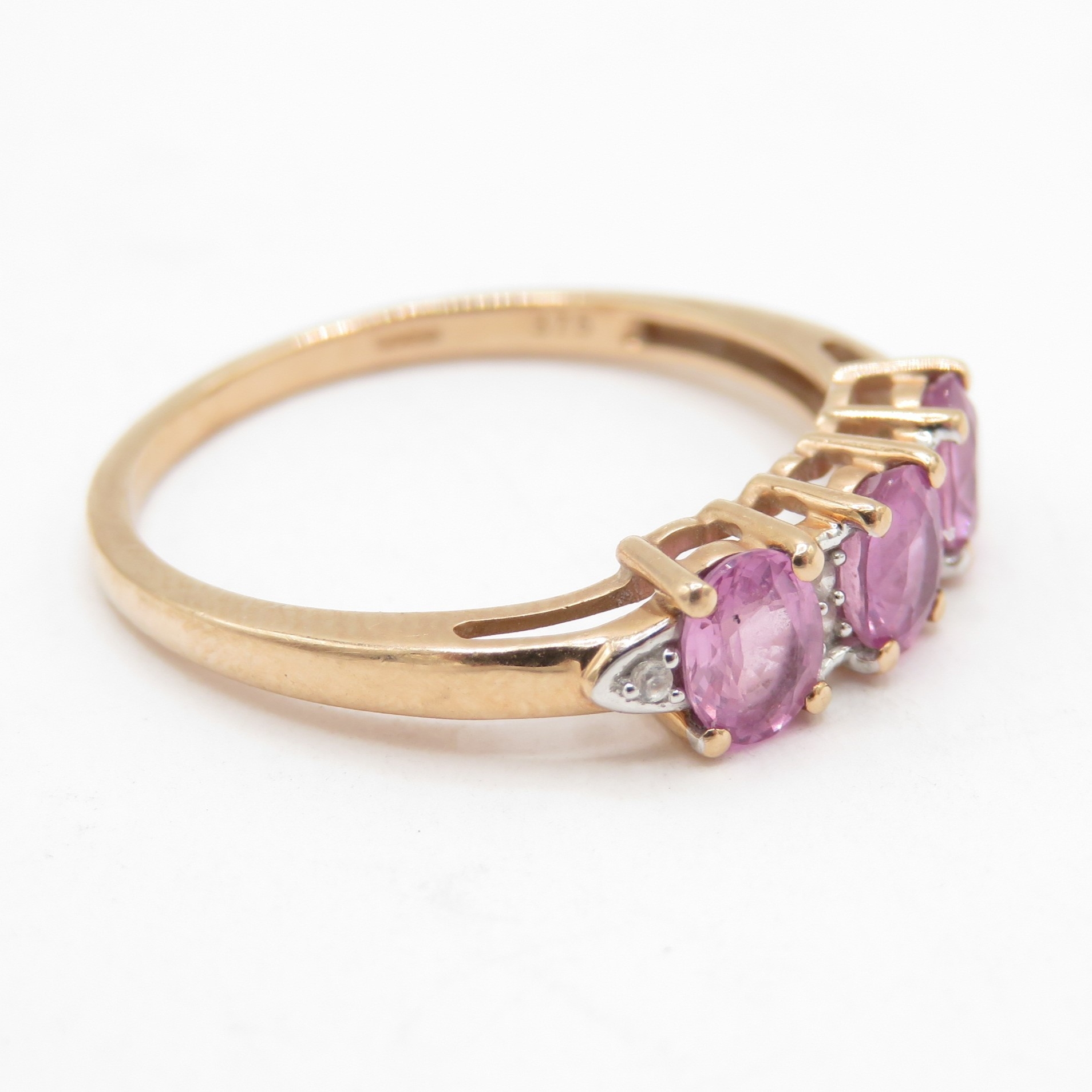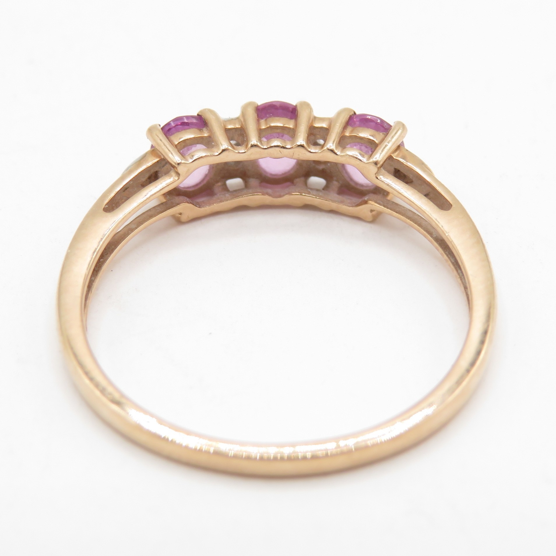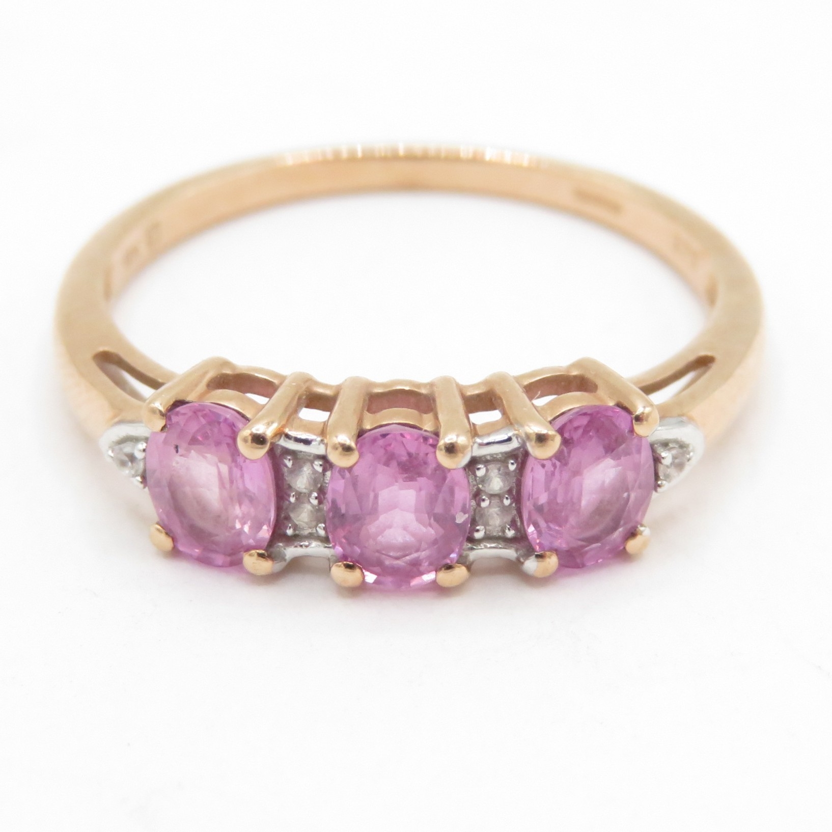 9ct Rose Gold Pink Sapphire Triology Ring, Hallmarked Birmingham (1.7g) Size O