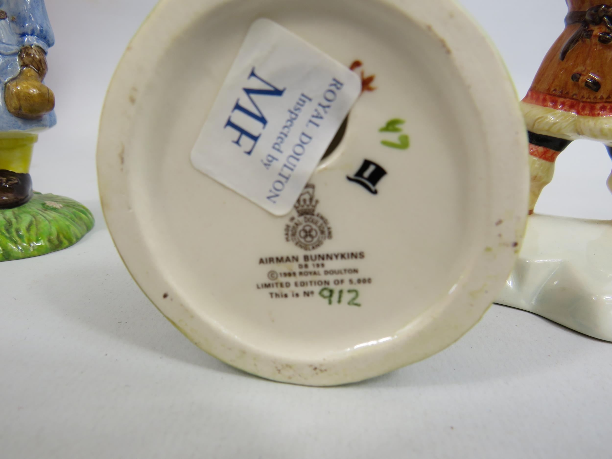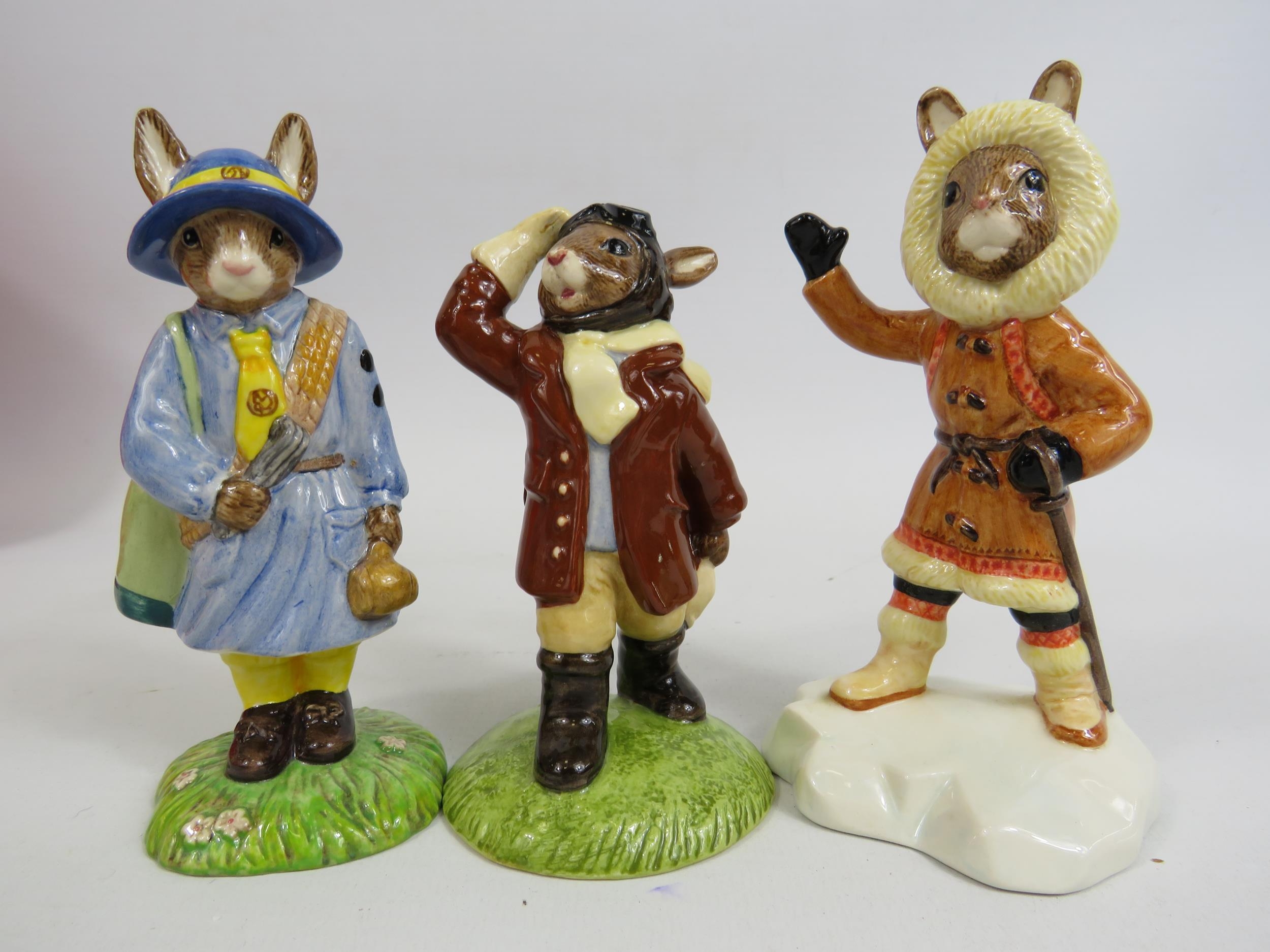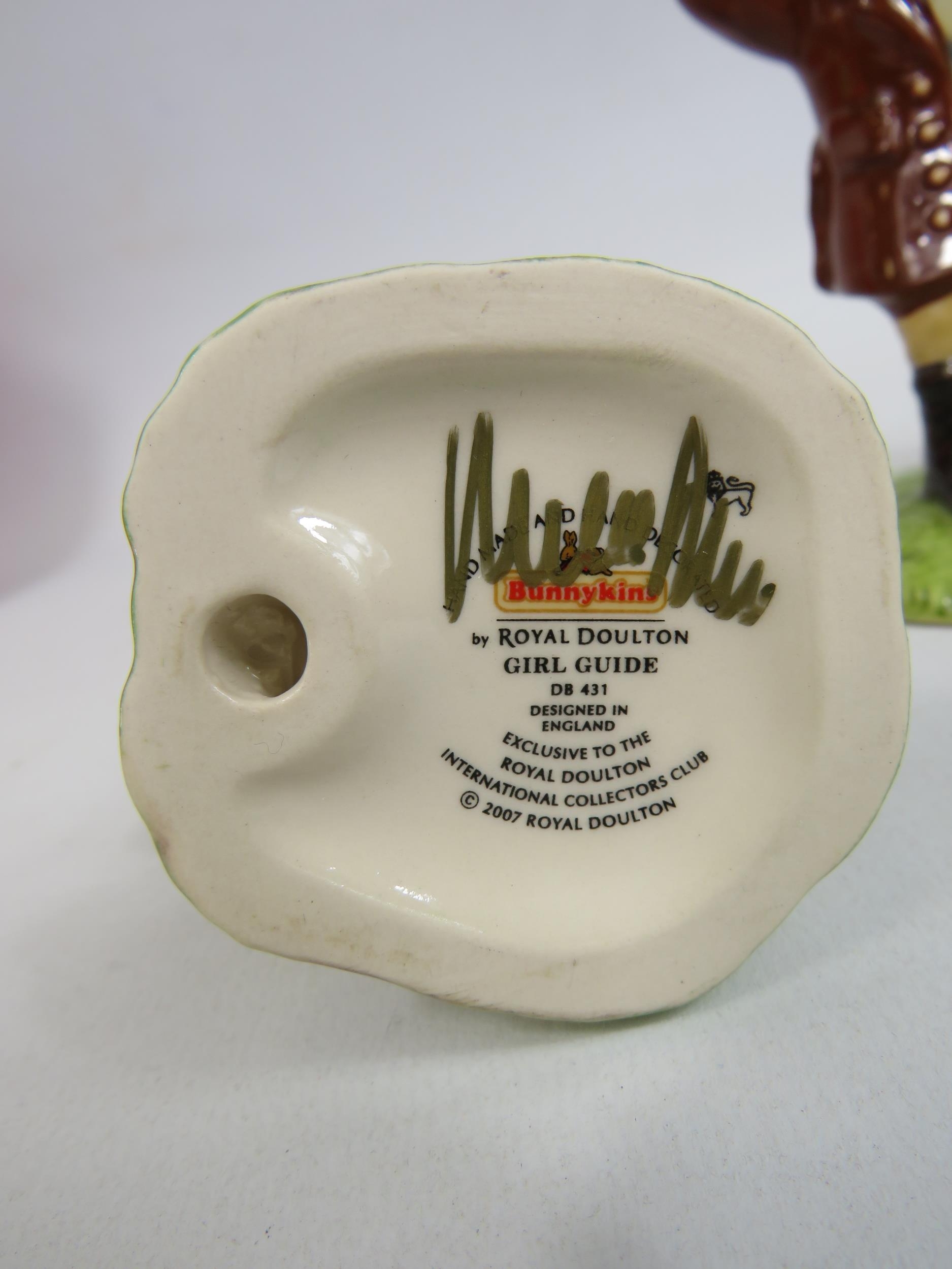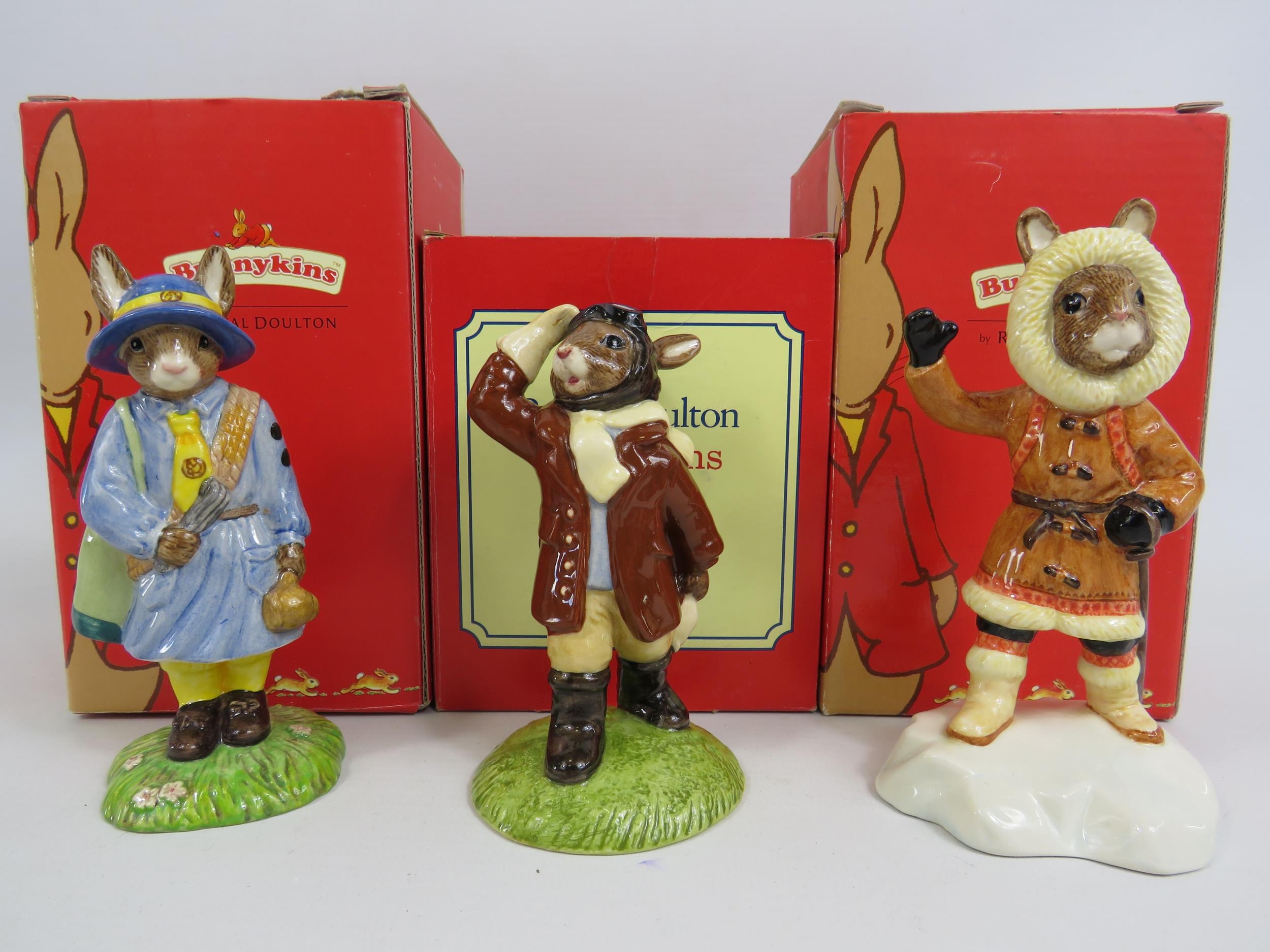 3 Royal Doulton Bunnykins figurines Girl Guide signed by Micheal Doulton, limited Ed Airman and Eskimo. All with boxes.