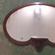 Kidney Shaped Mahogany Inlaid Bevelled Glass Wall Mirror with carved candle shelf/bracket