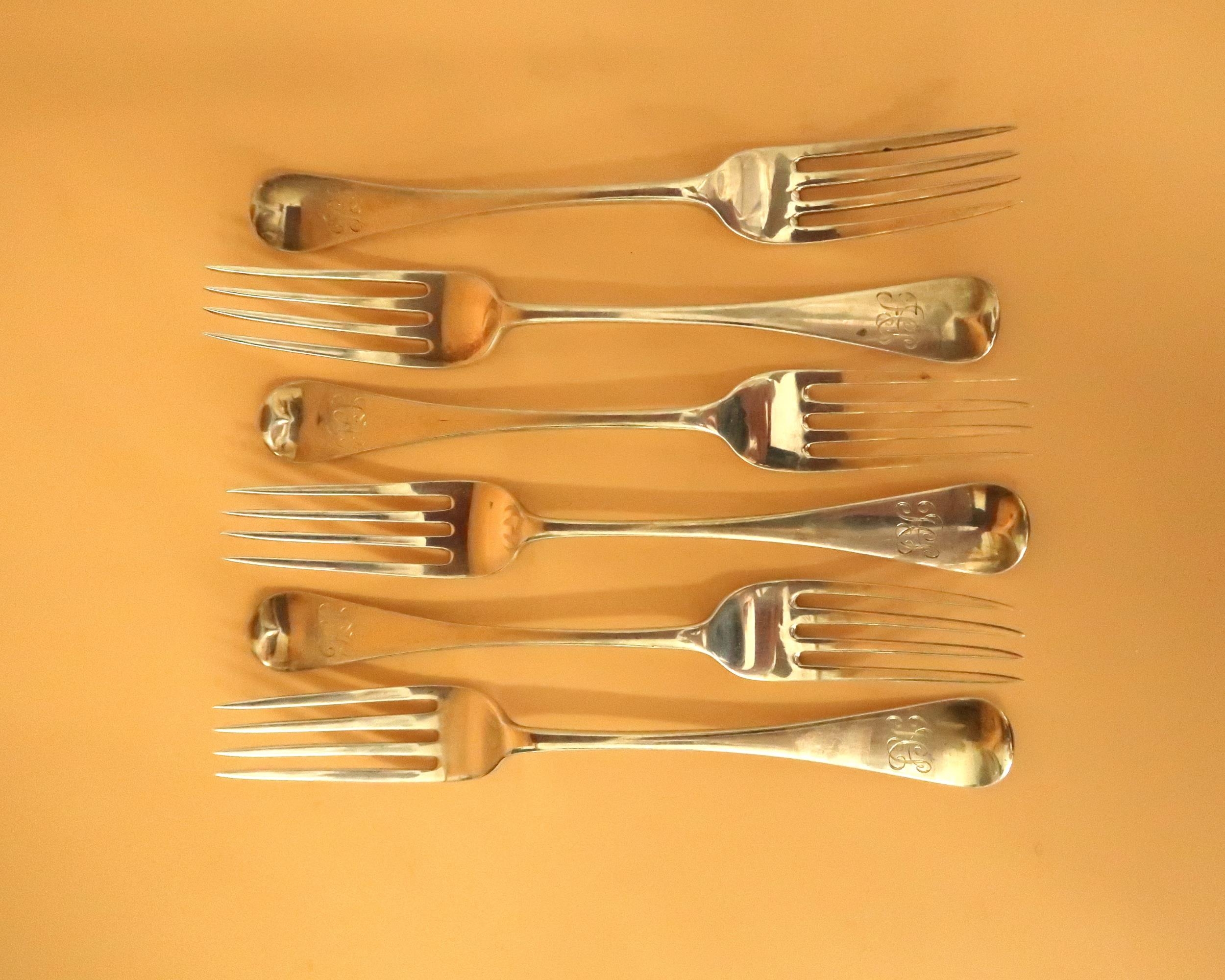 A set of six Victorian silver dessert forks, in the Hanovarian pattern, monogram engraved, John & Henry Lias, London 1846, total weight 7.19toz.