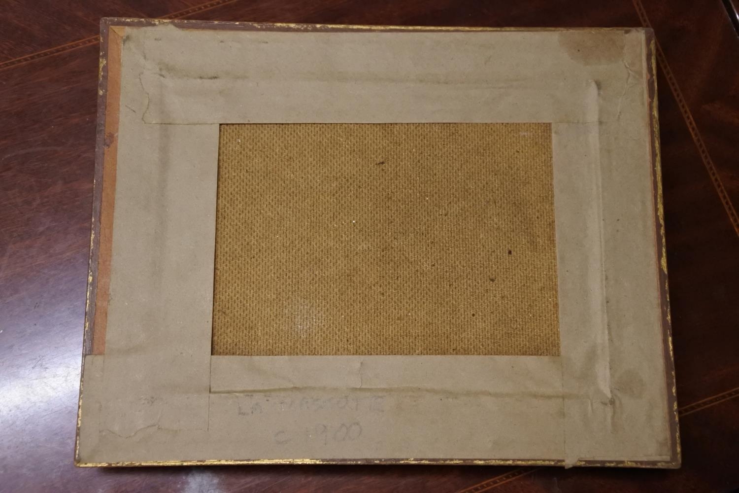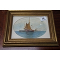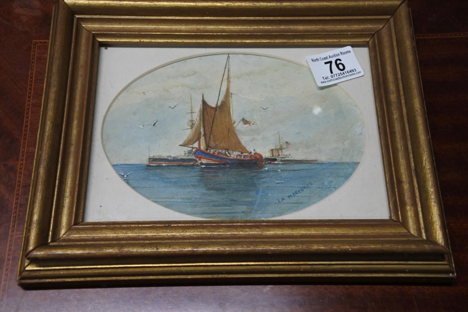 A framed painting of boats at sea, signed by the artist 'LA Mascotte'.