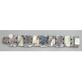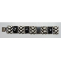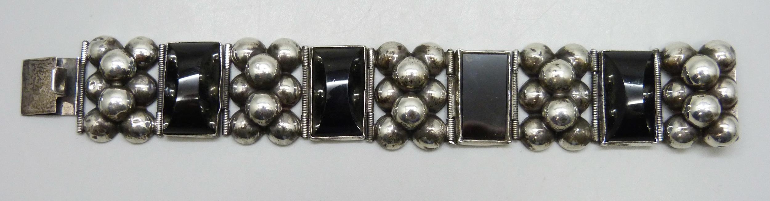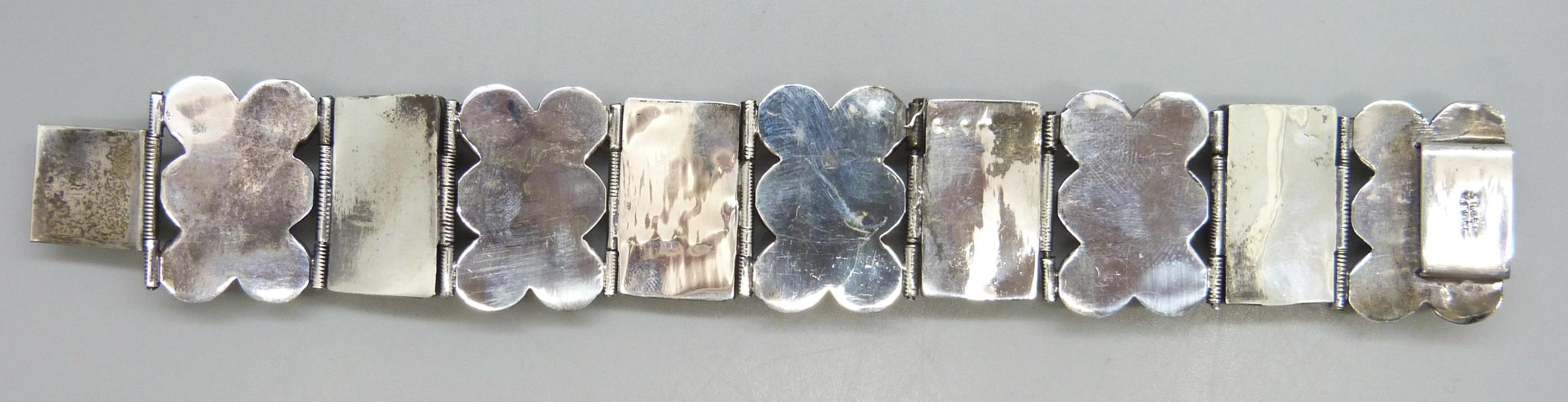 A heavy Mexican silver bracelet, possibly Hector Aguilar, one stone unmatched, 58g, 18.5cm, 3cm wide