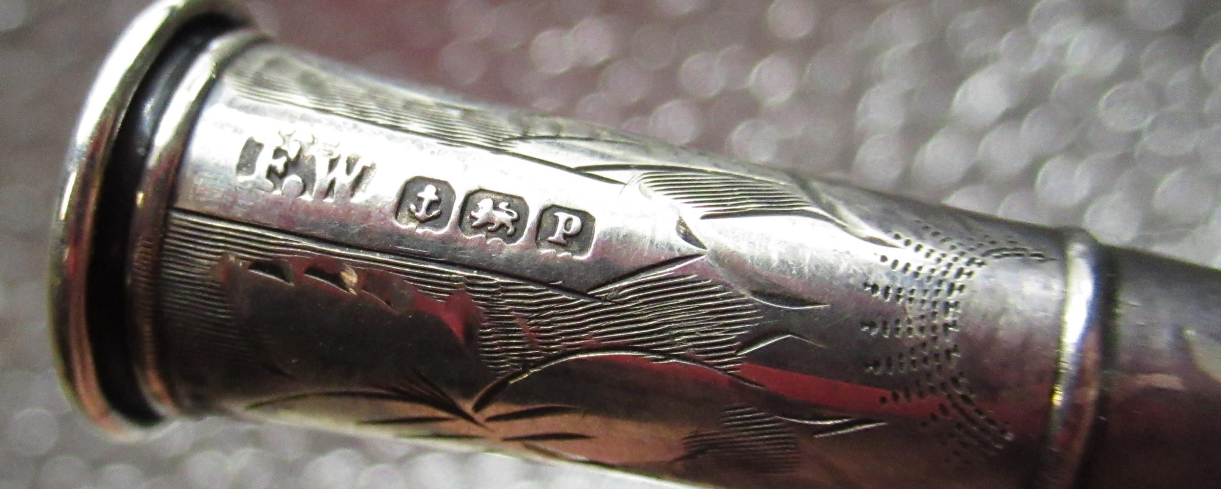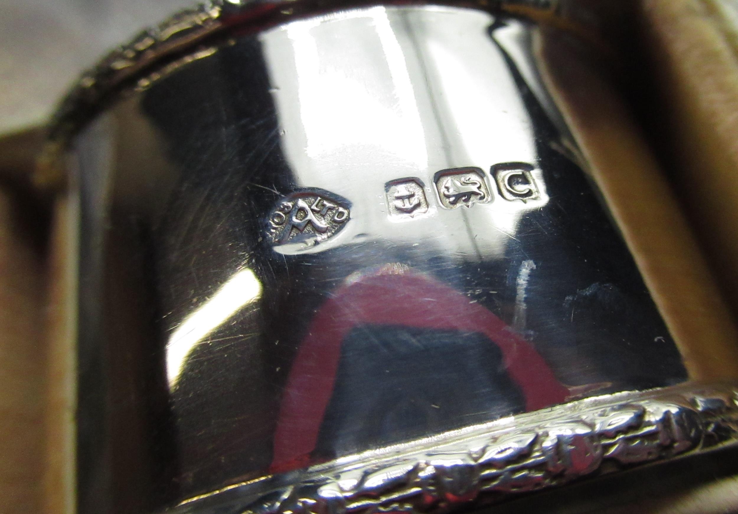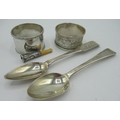 Hallmarked Sterling silver napkin ring baring name Harry Adie Brothers Ltd, Birmingham, 1927 a bright cut napkin ring baring H initial by Rolason Brothers, Birmingham, 1922, a bright cut hallmarked Sterling silver cigarette holder by Francis Webb, Birmingham, 1939 and two hallmarked Sterling silver spoons