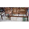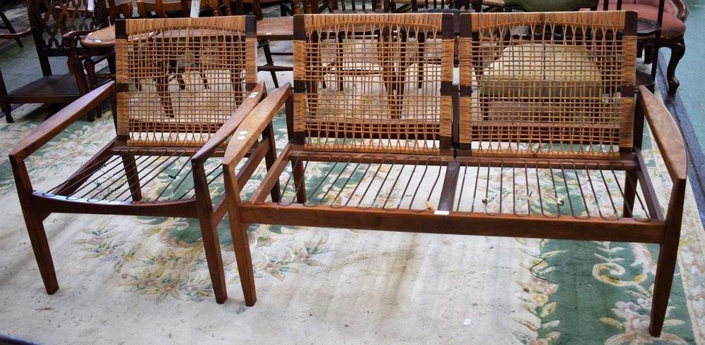 A Danish teak two seat sofa; a conforming armchair, each with woven cane backs, the sofa 128cm wide (2)