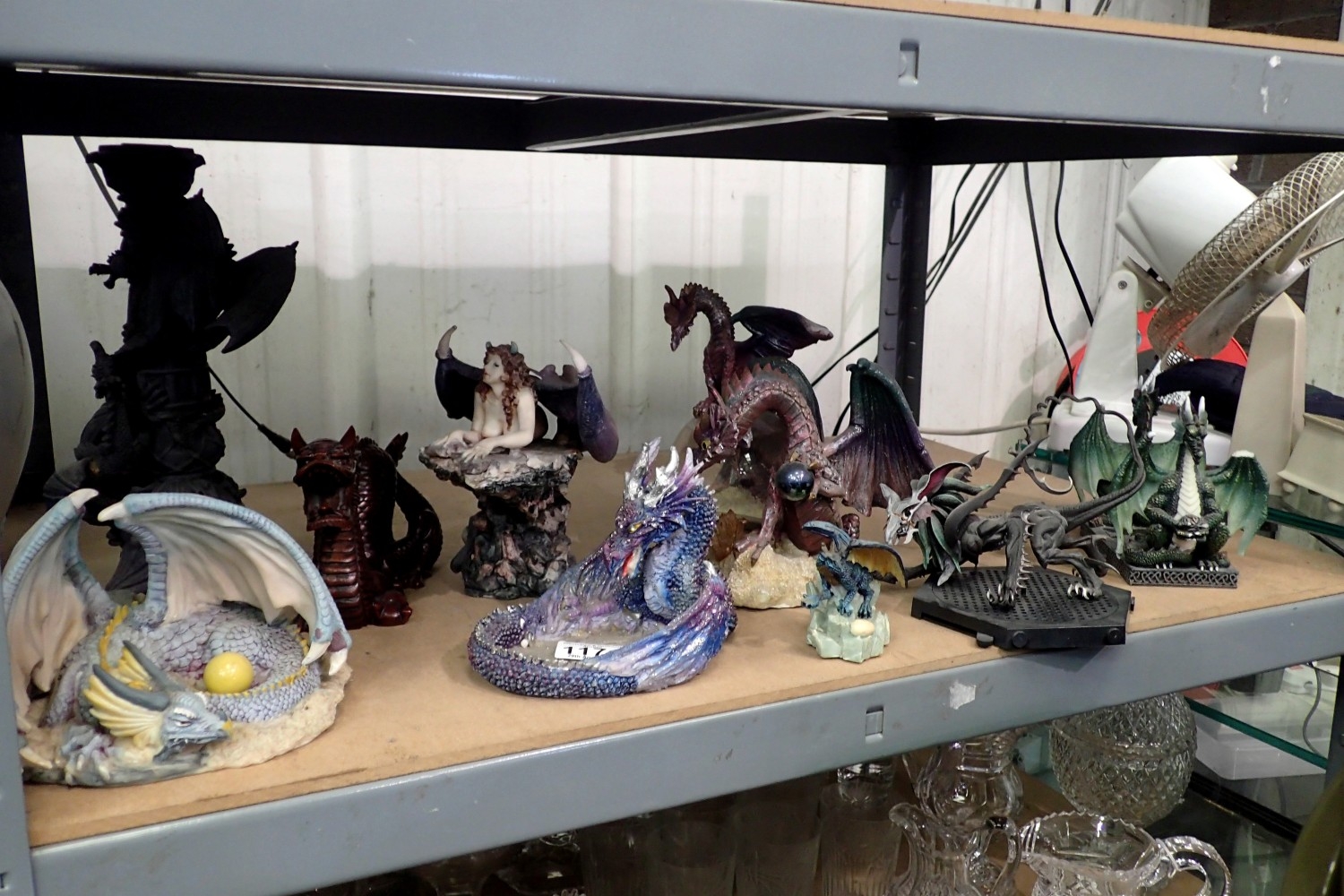 Mixed figurines including dragons, some damages. Not available for in-house P&P
