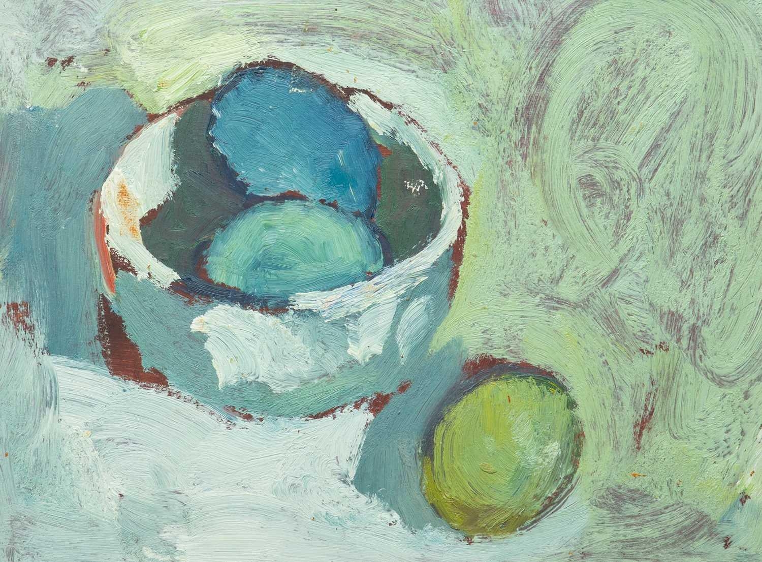 § Romi BEHRENS (1939-2019) Still Life Oil on board, 27cm x 35cm. A gift to the vendor's mother from her friend, the artist.
