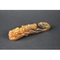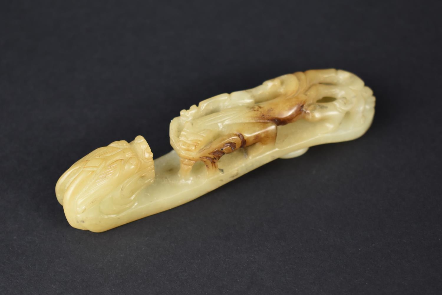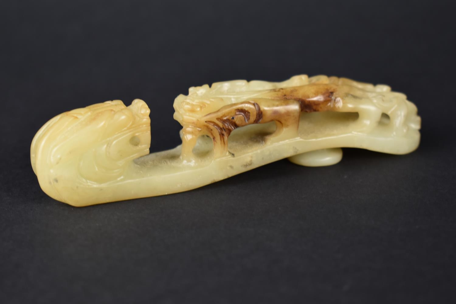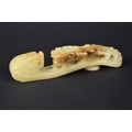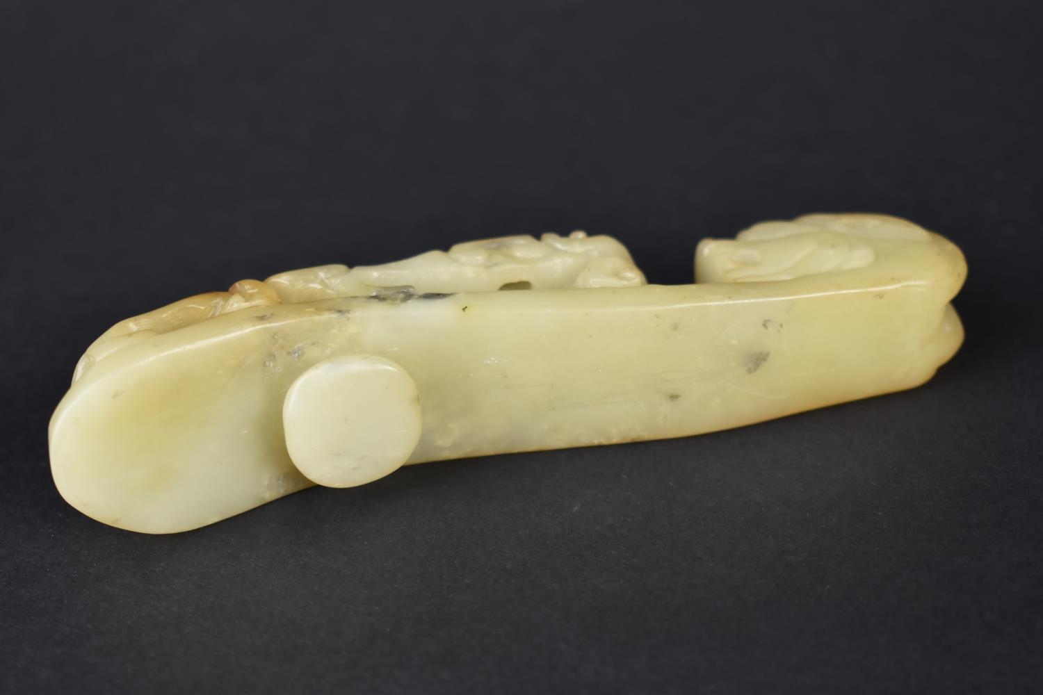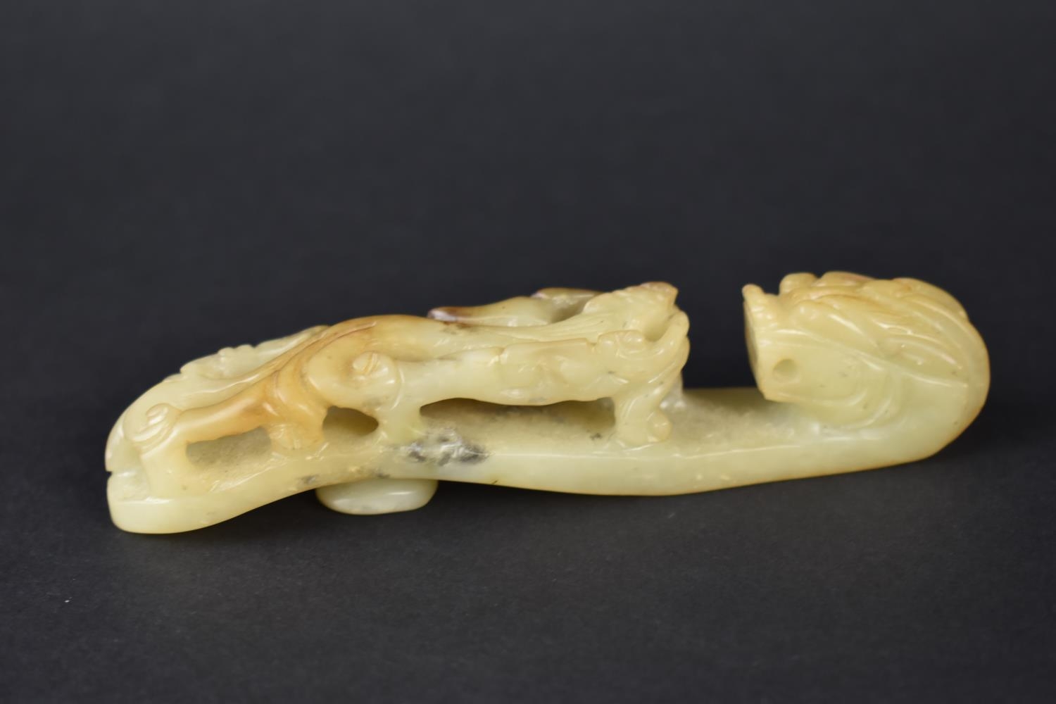 A Carved and Pierced Chinese Soapstone Chi Buckle, 12cms Long