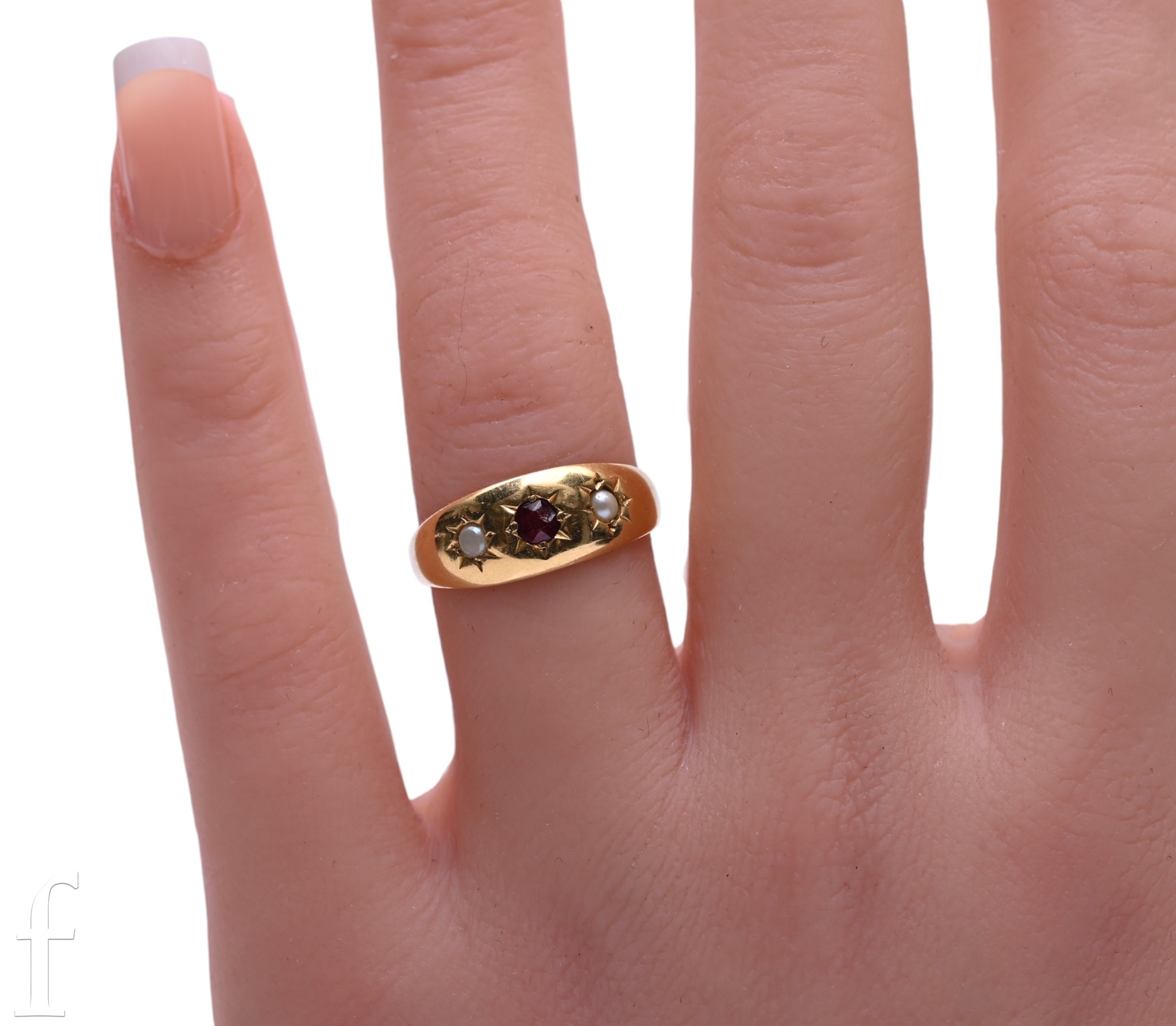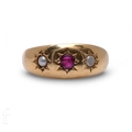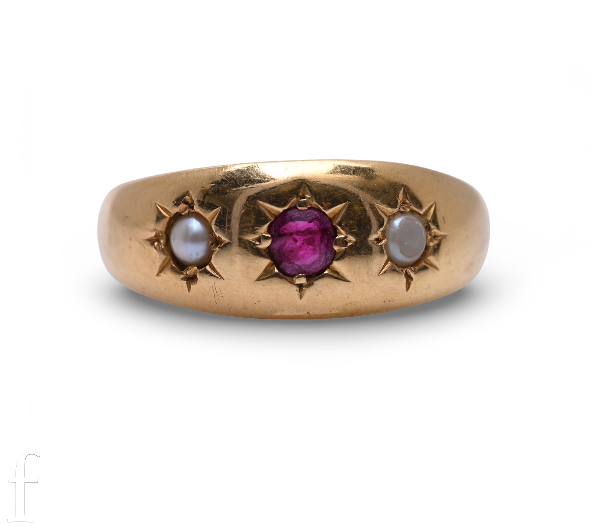 A late Victorian ruby and half pearl ring, all set in star settings, not marked, total weight 3.3g, ring size O.