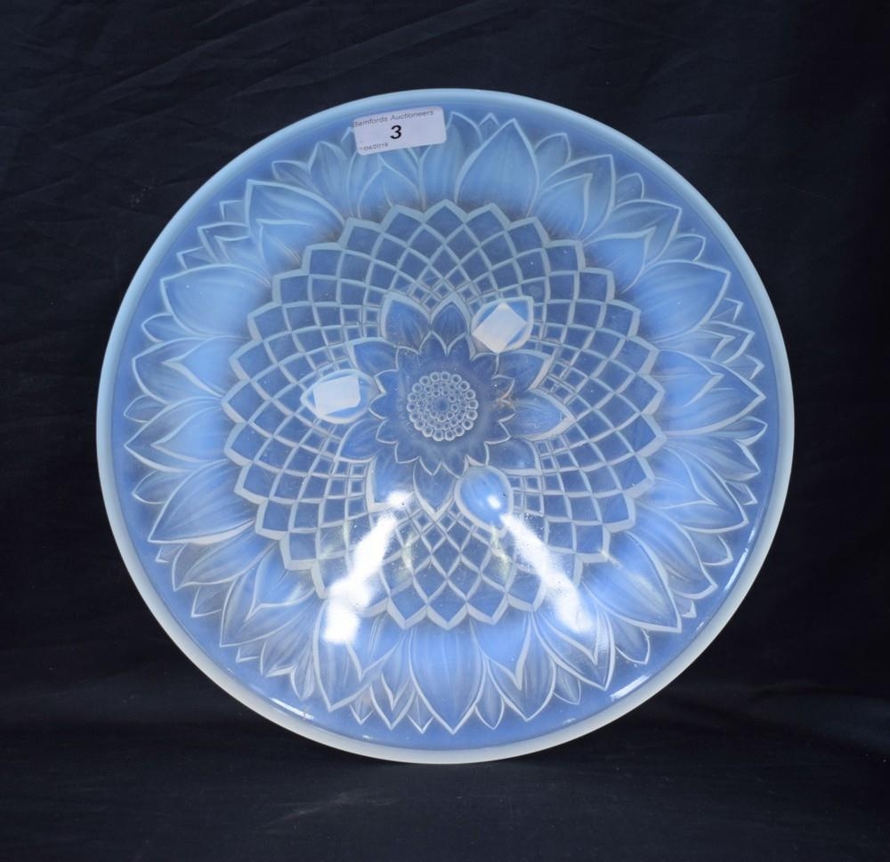 A Sabino French opalescent glass bowl, moulded with a flowerhead, c.1930