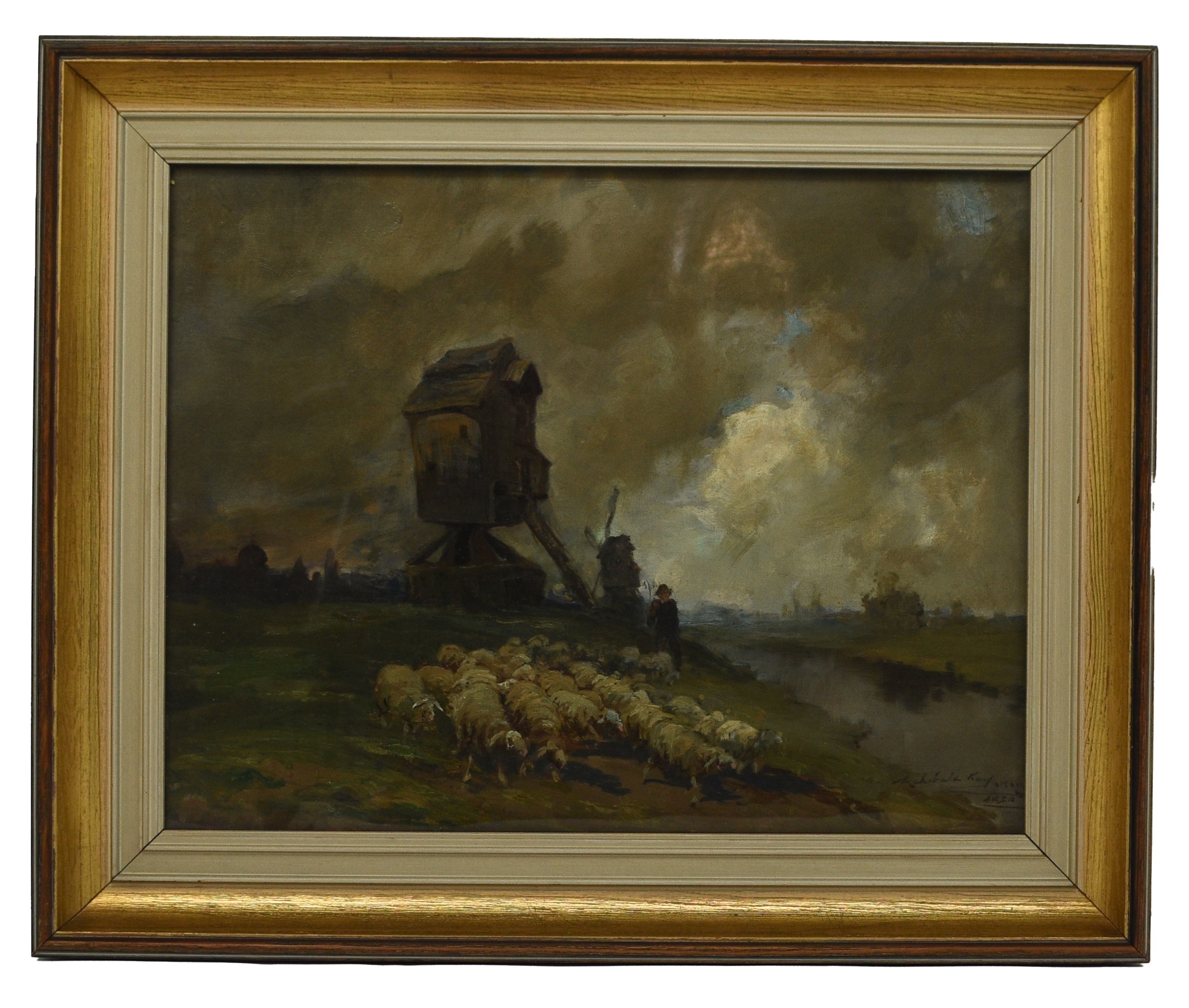 Archibald Kay RSA RSW (Scottish 1860-1935) The Old Mills near Bruges, signed lower right, oil on canvas, 36 x 46 cm, frame 46.5 x 56.5 cm