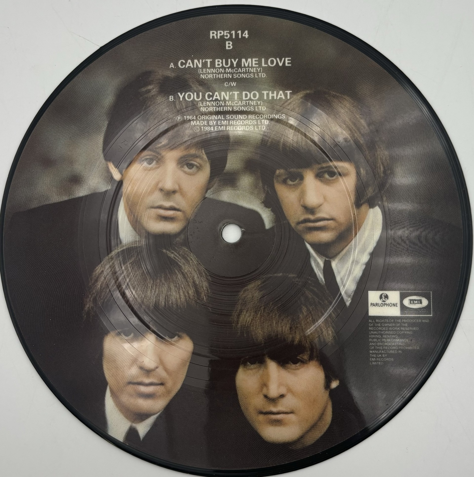 1984 re-issue Beatles picture disc. Features Can't Buy Me love & You Can't Do That.