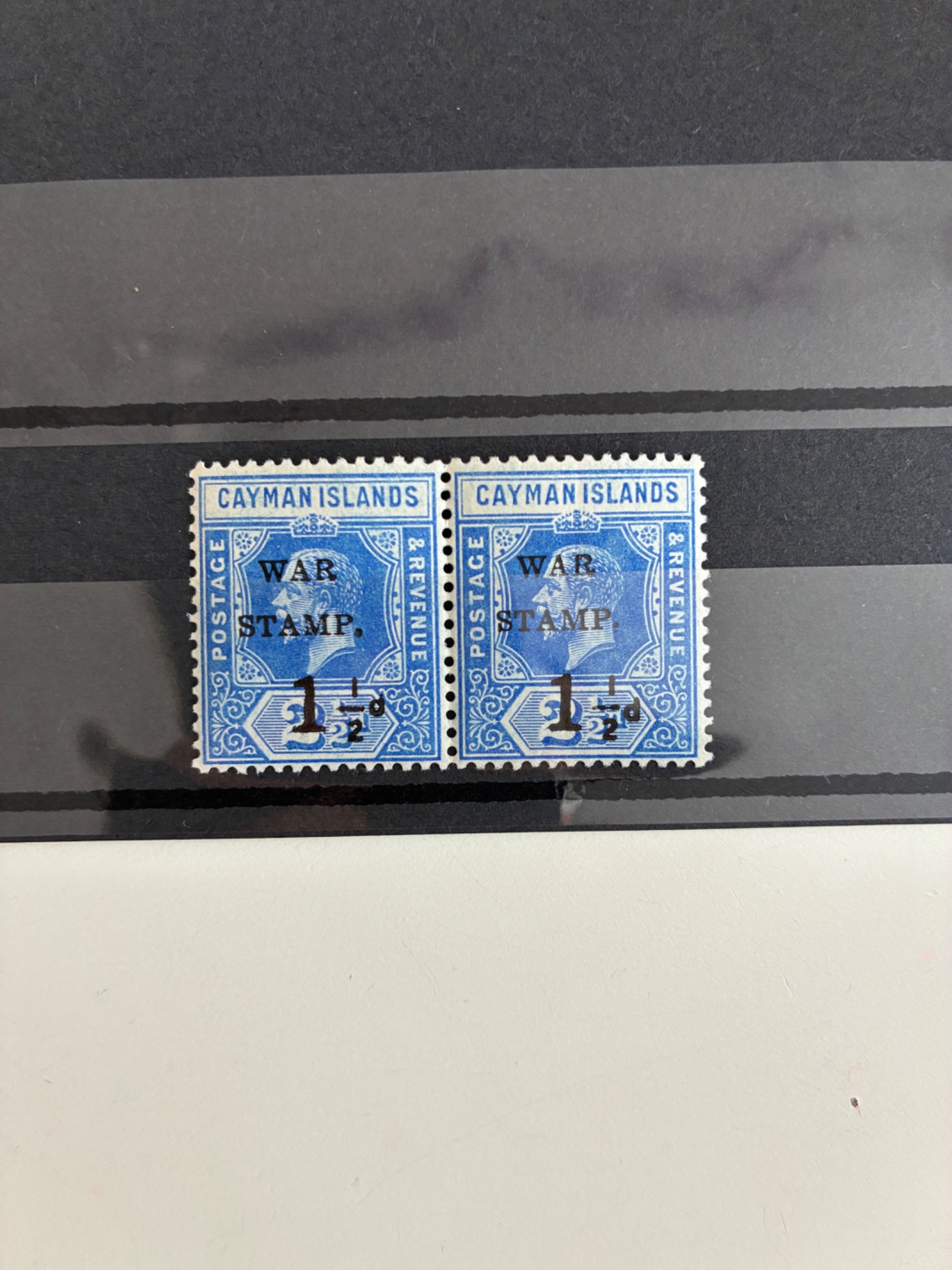 Cayman Islands 1917 1.5d on 2.5d deep blue pair, u/m (SG 53) Cat £42