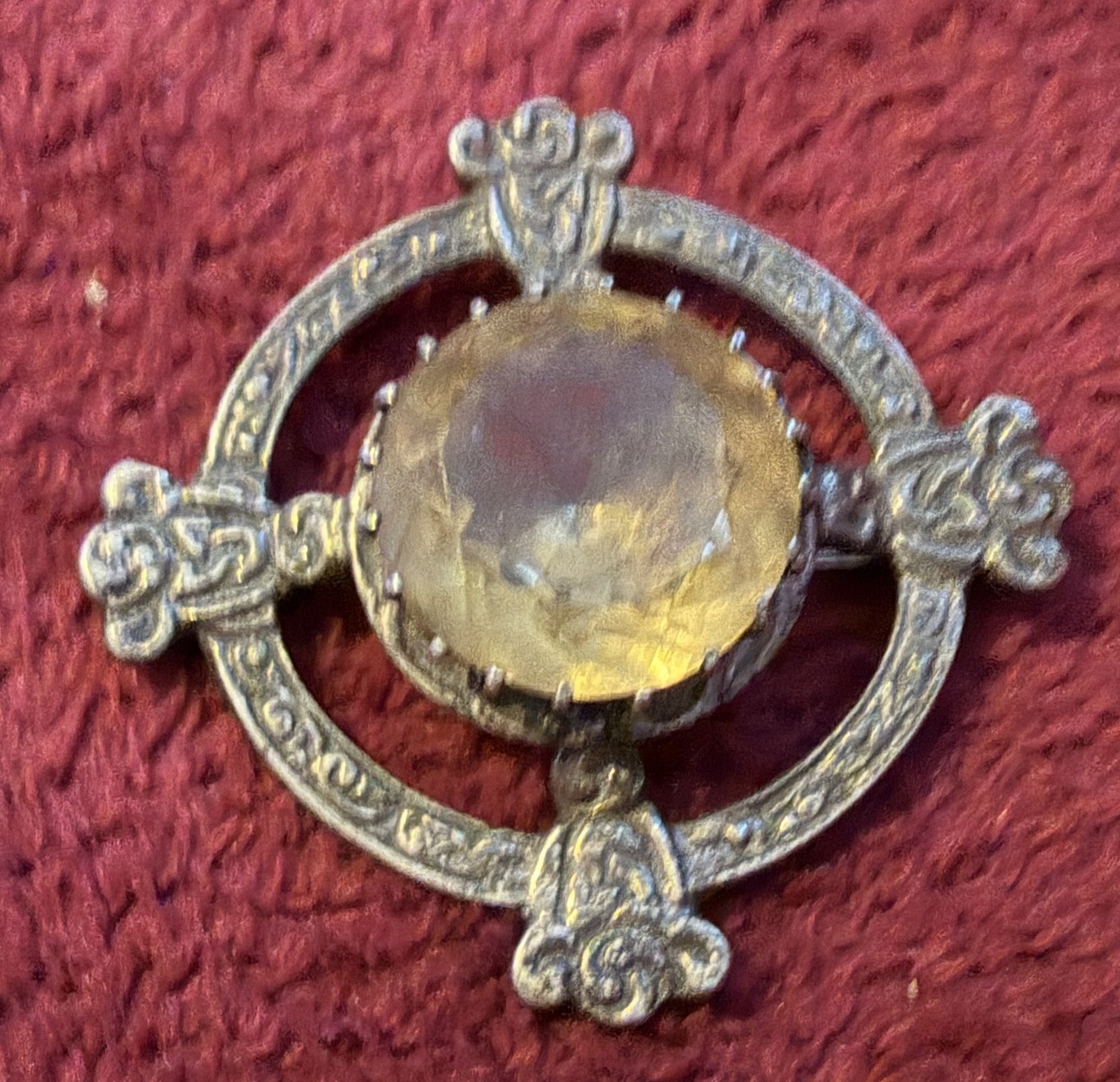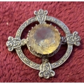 JEWELLERY : Scottish Silver brooch with large Citrine gem stone to centre, Robert Allison Edinburgh 18.9g