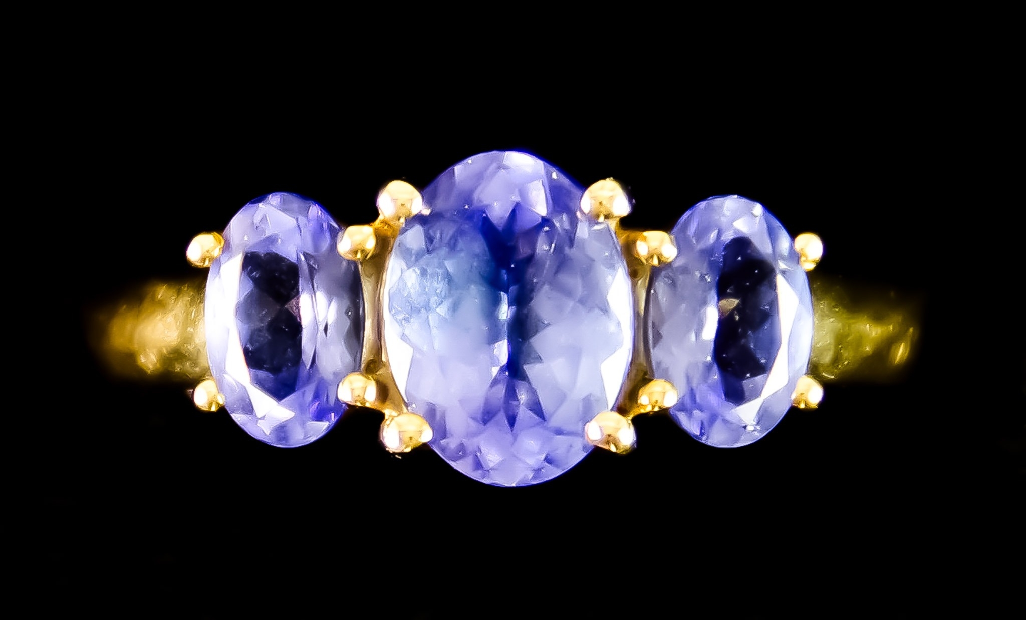 A 9ct Gold Three Stone Tanzanite Ring, set with three oval faceted tanzanite stones, of approximately 2ct total, size O+, gross weight 2.6g