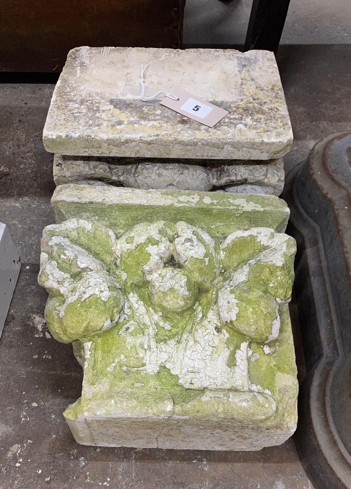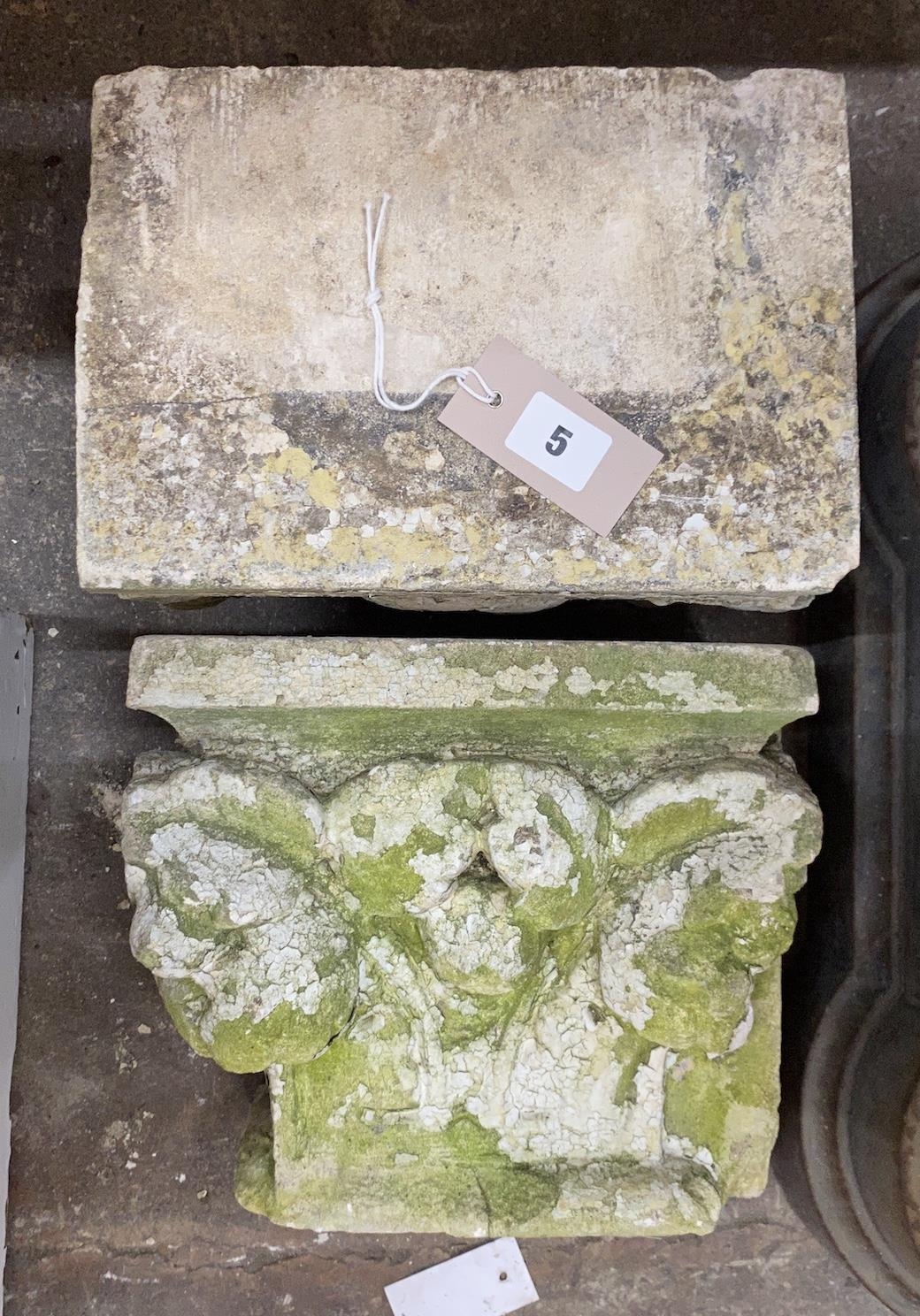 A pair of stone capitals, width 26cm, depth 18cm, height 24cm