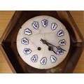 A scratch built Victorian Ebony cased chiming wall clock with white marble face, blue and white enamel Roman numerals and aesthetic movement detail
