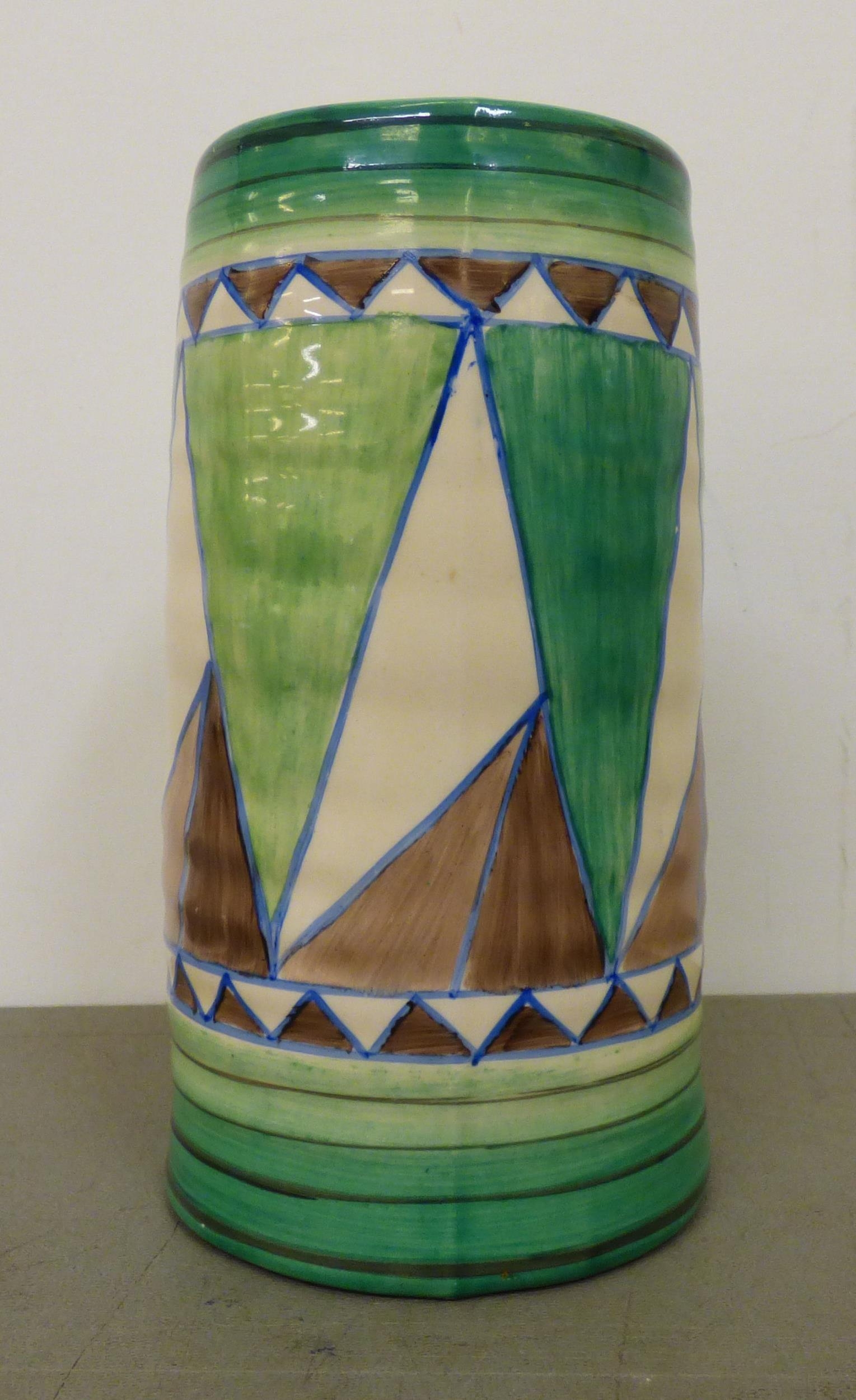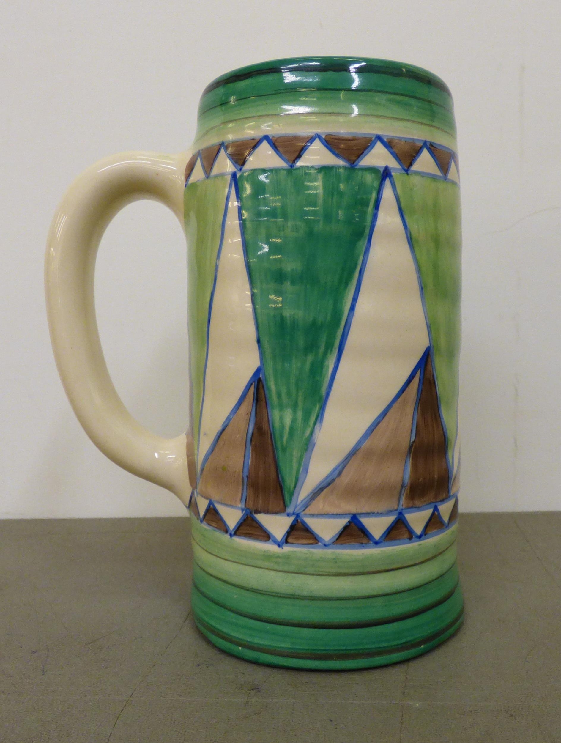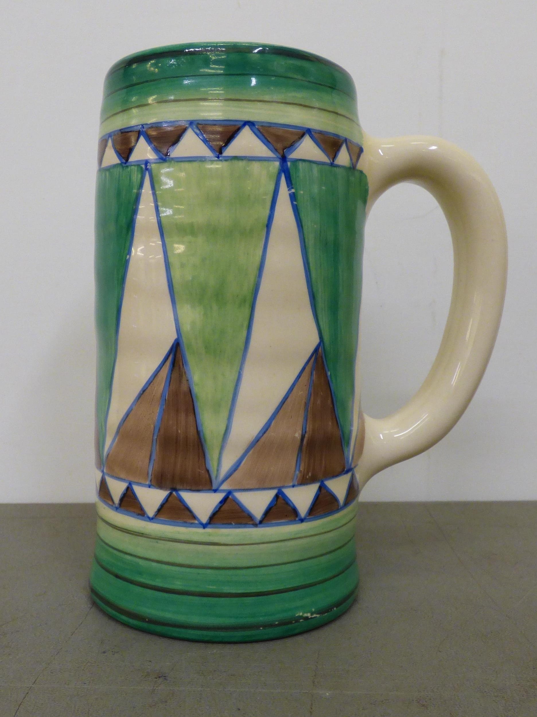 A Clarice Cliff Original Bizarre china design tankard, produced by Wilkinson Ltd 6"h