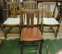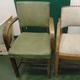 2 1930's Armchairs on square rounded corner front supports, bow padded backs, quadrant arms (2)