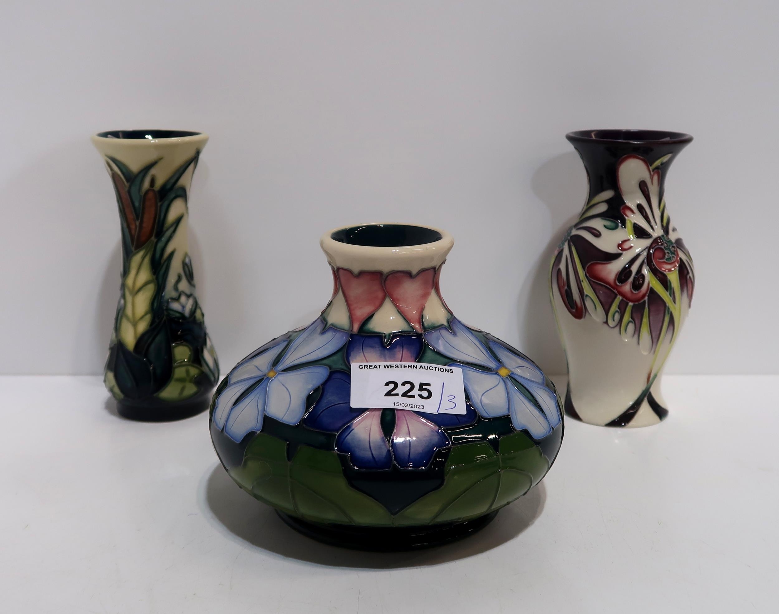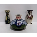 A Moorcroft Joy pattern trial vase, dated 07.08.07, together with a Lamia pattern vase and a Hydrangea trial pattern vase, dated 13.12.16