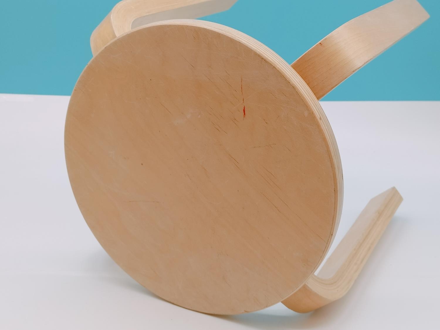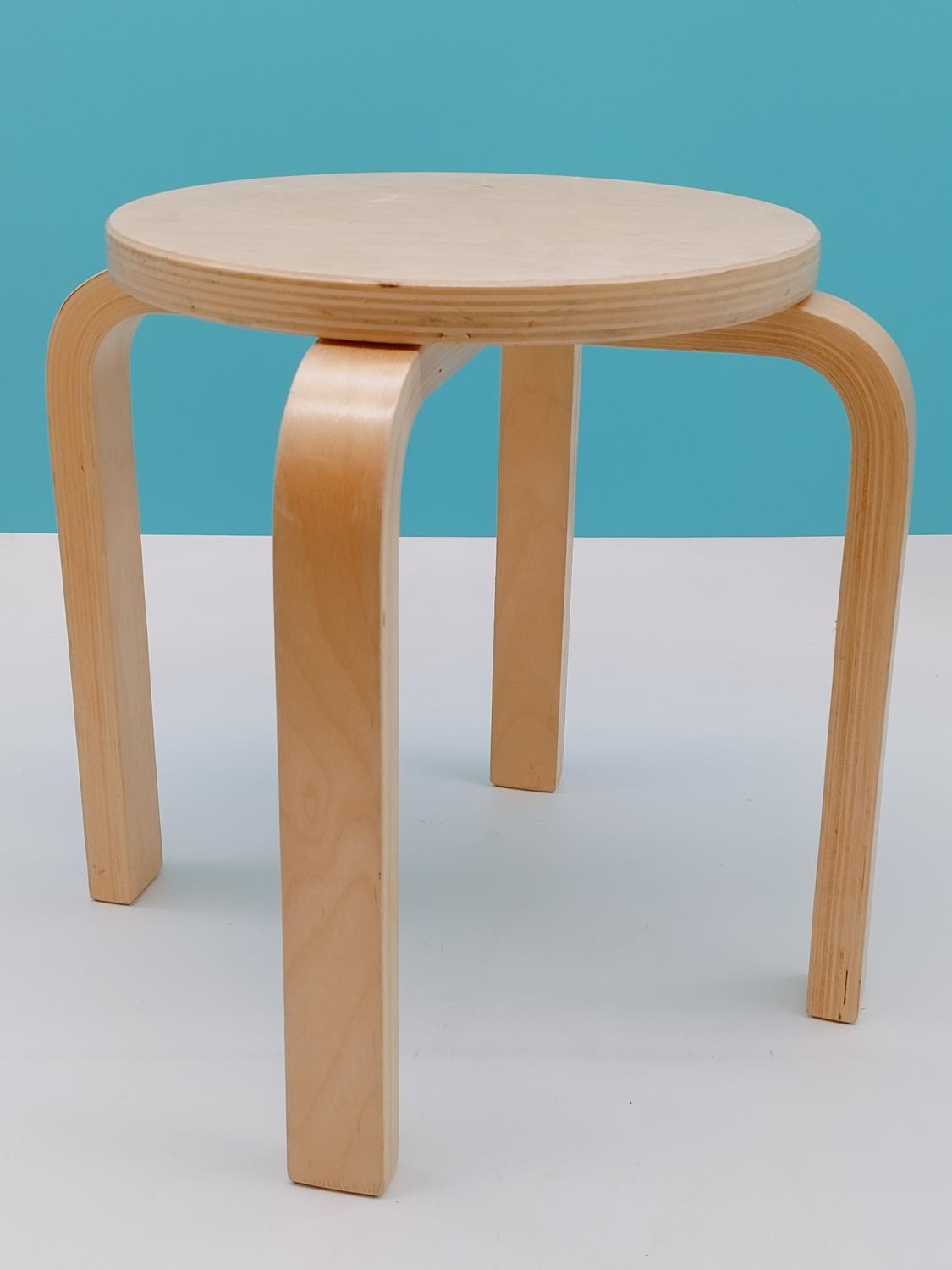 Childs Light Wood Stool. 30cm High, Diameter to include Legs 34cm.