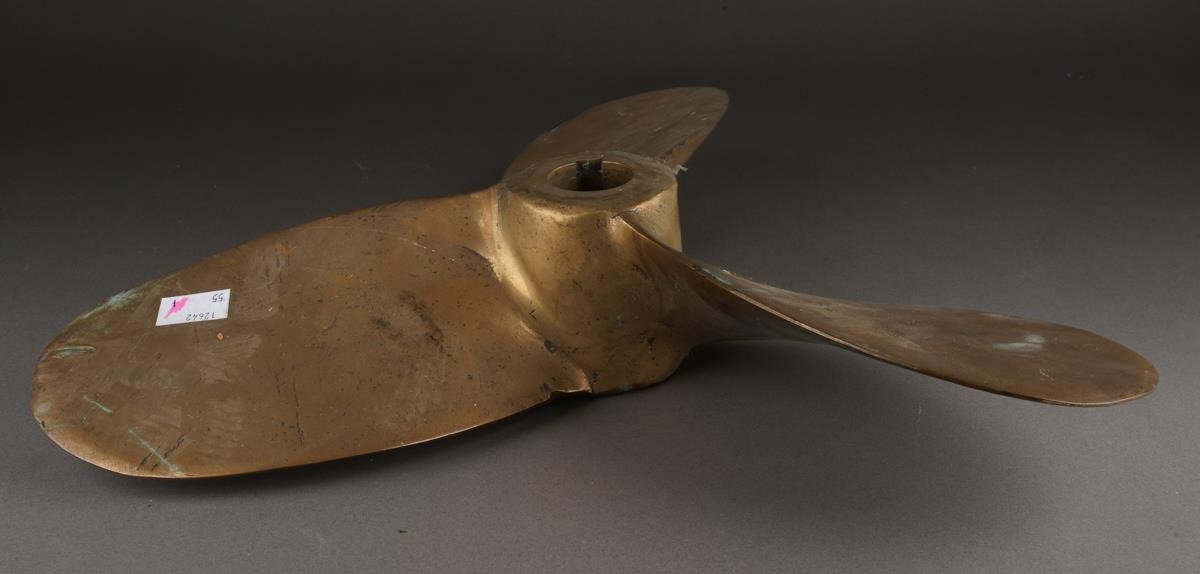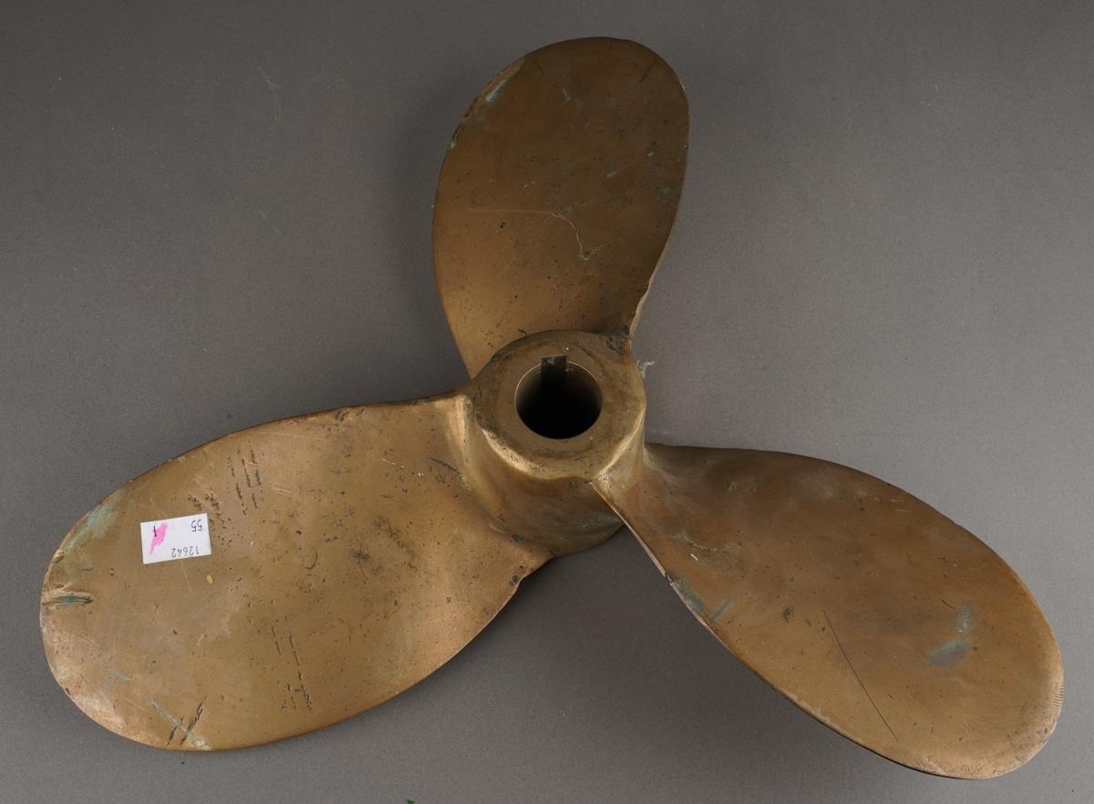 A vintage bronze three-blade boat propeller, circa 1940s, approx 38cm wide [1]