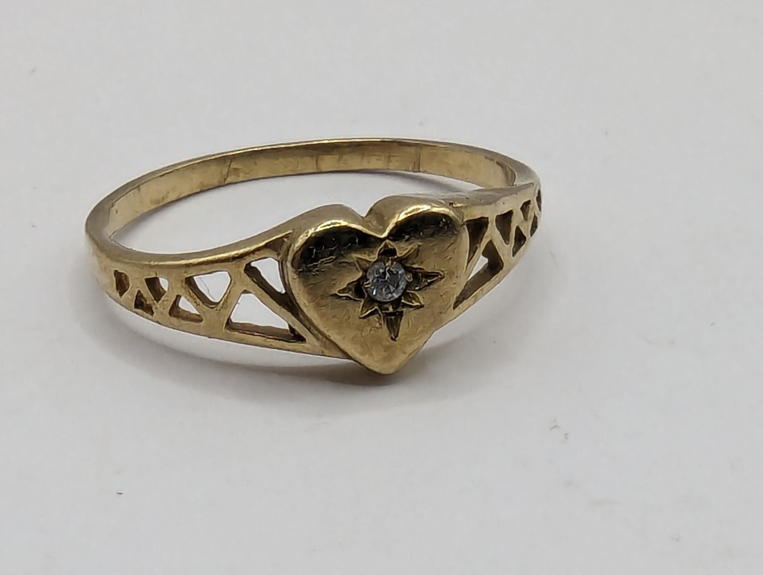 9ct gold and white stone heart-shaped ring, size K, gross weight 1.13 grams