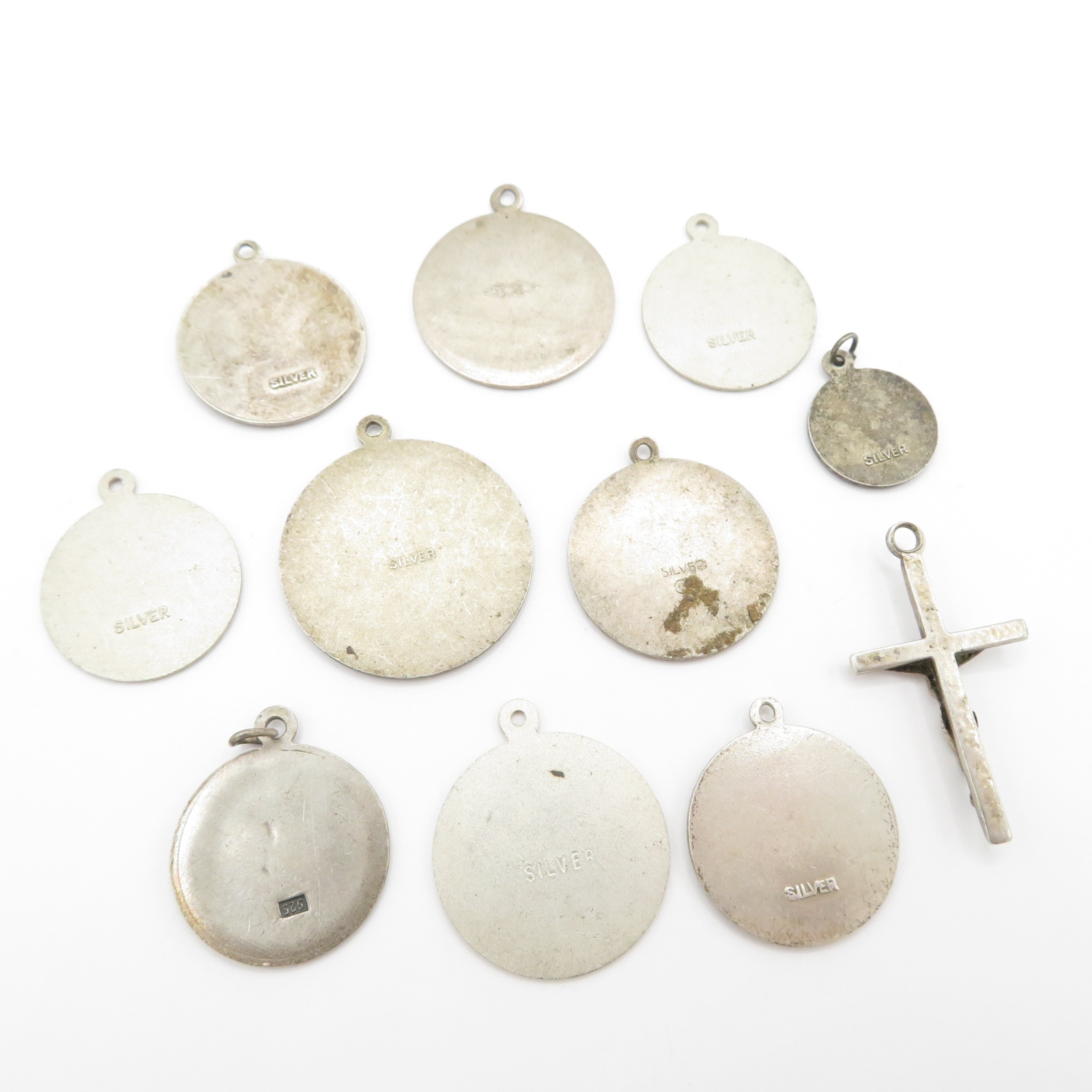 Collection of Sterling Silver St Christopher Pendants and Cross - 26g