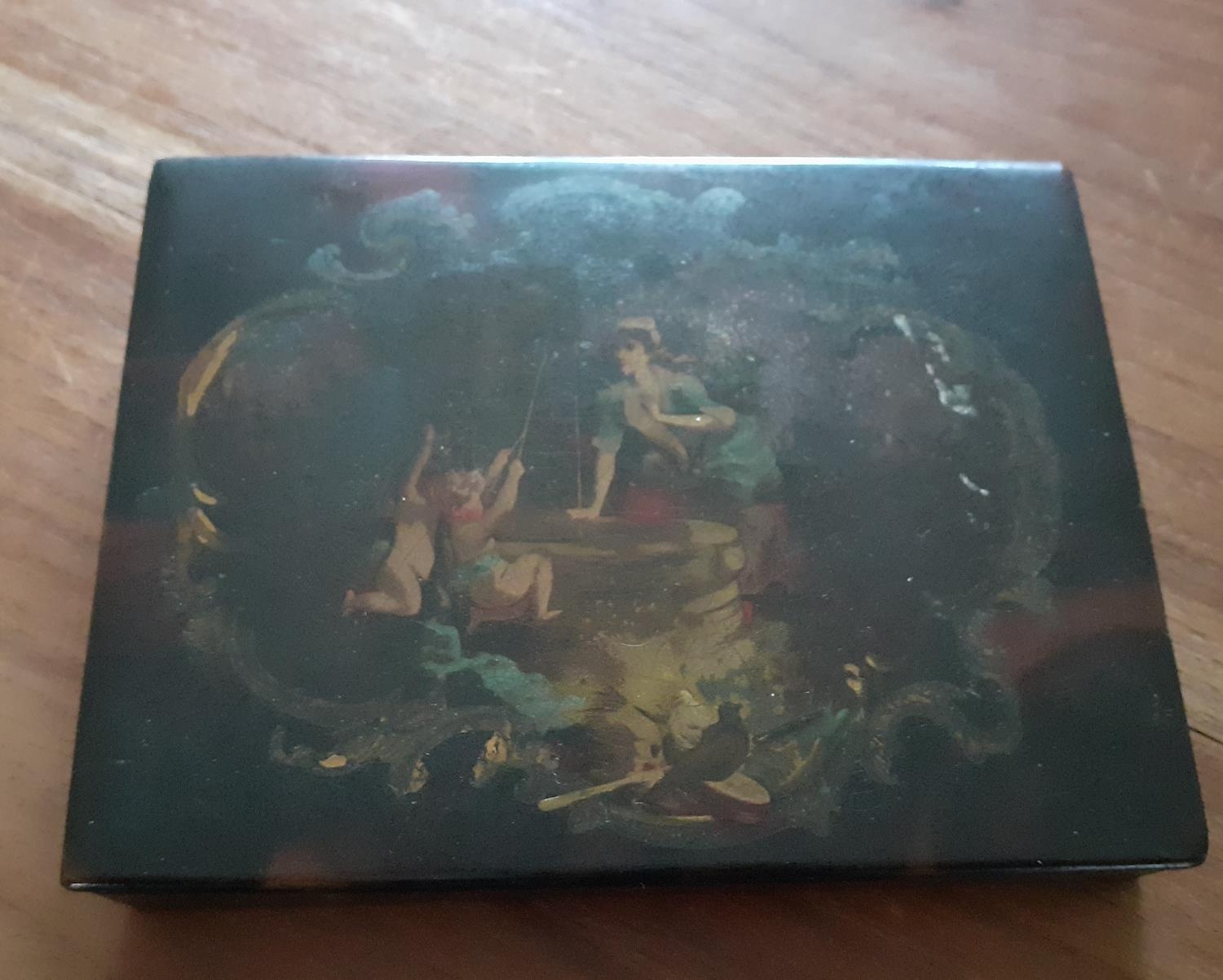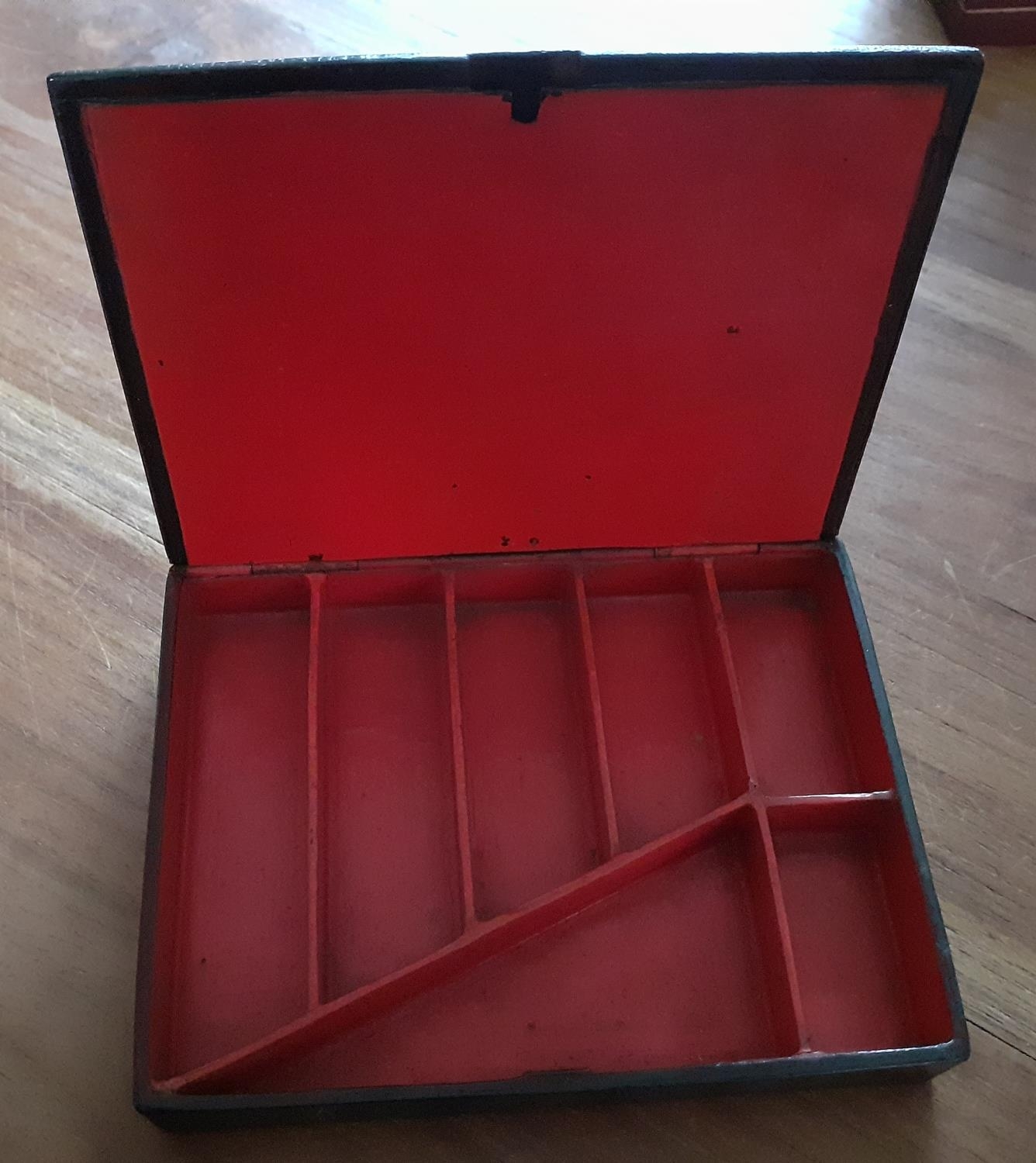 Early Tortoiseshell Decorative Box. Multiple compartments inside. Box measures 13cm x 10cm