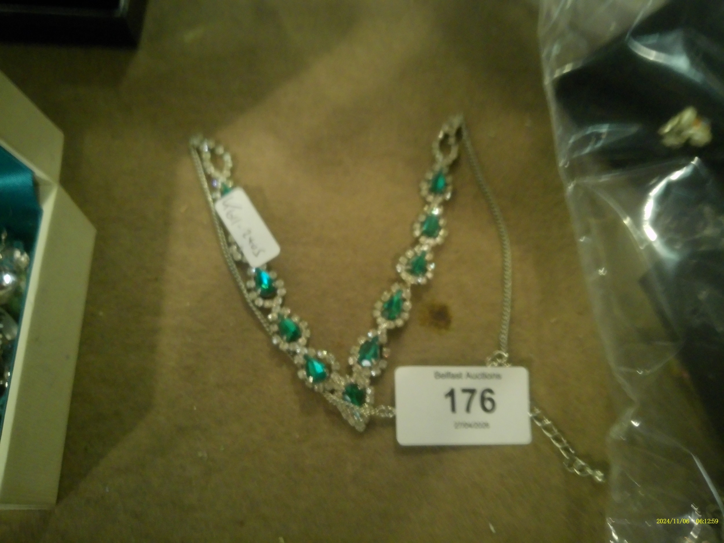 ART DECO STYLE GREEN AND WHITE STONE NECKLACE