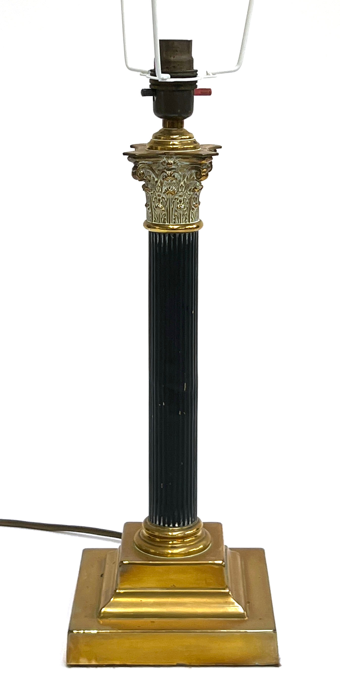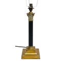 A gilt metal and ebonised corinthian column form table lamp, 35cmH excluding fitting