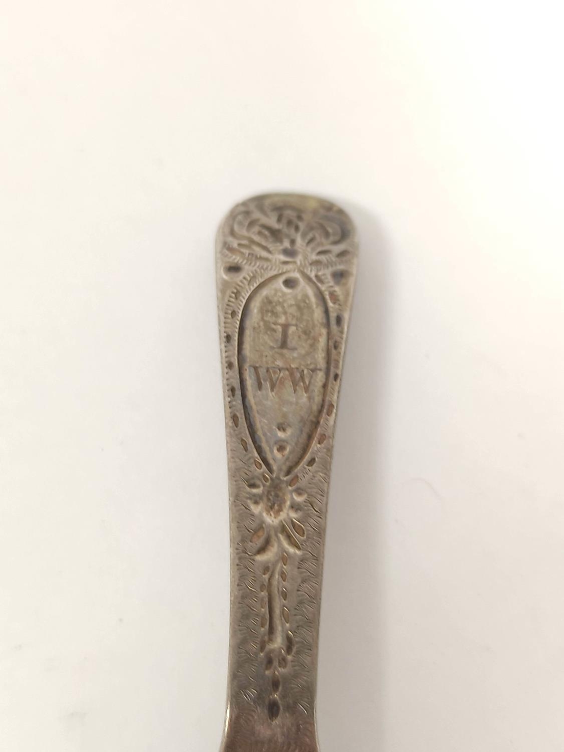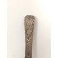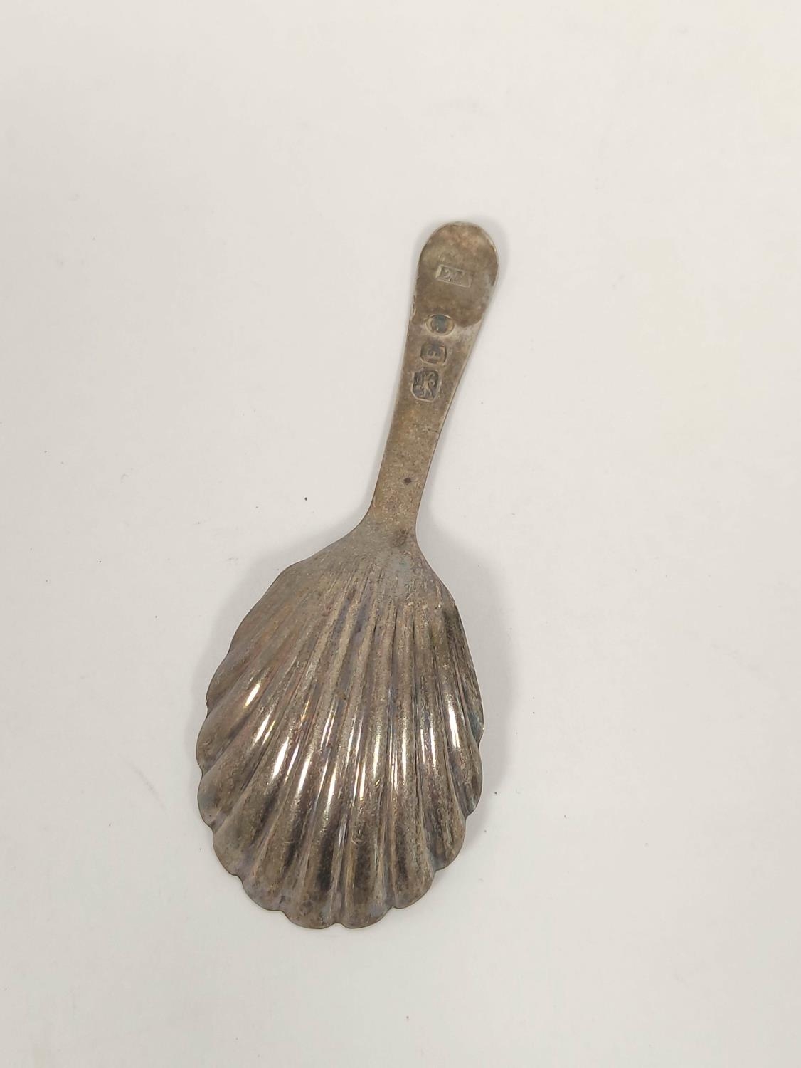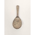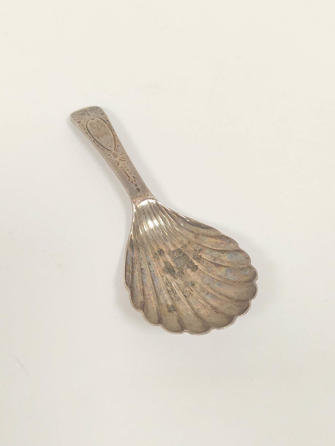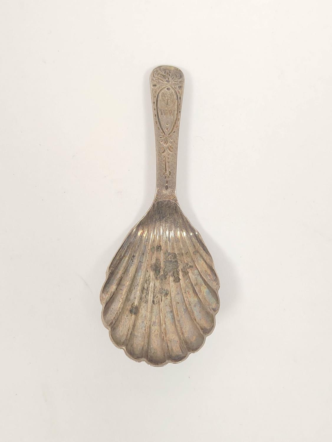 Regency silver caddy spoon, bright cut with scallop bowl, E. Morley 1800. 7.6 grms