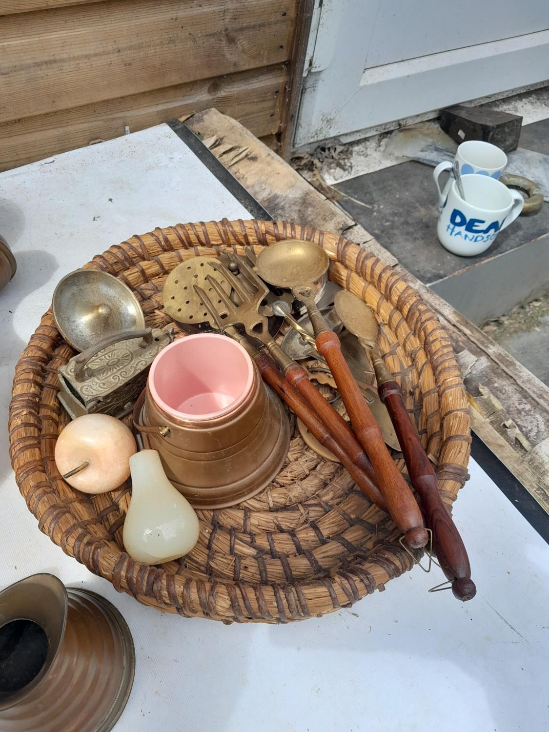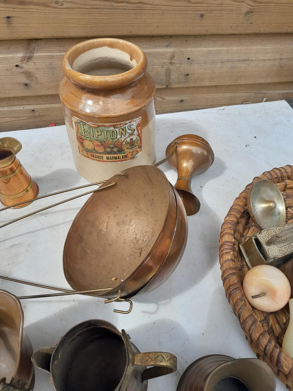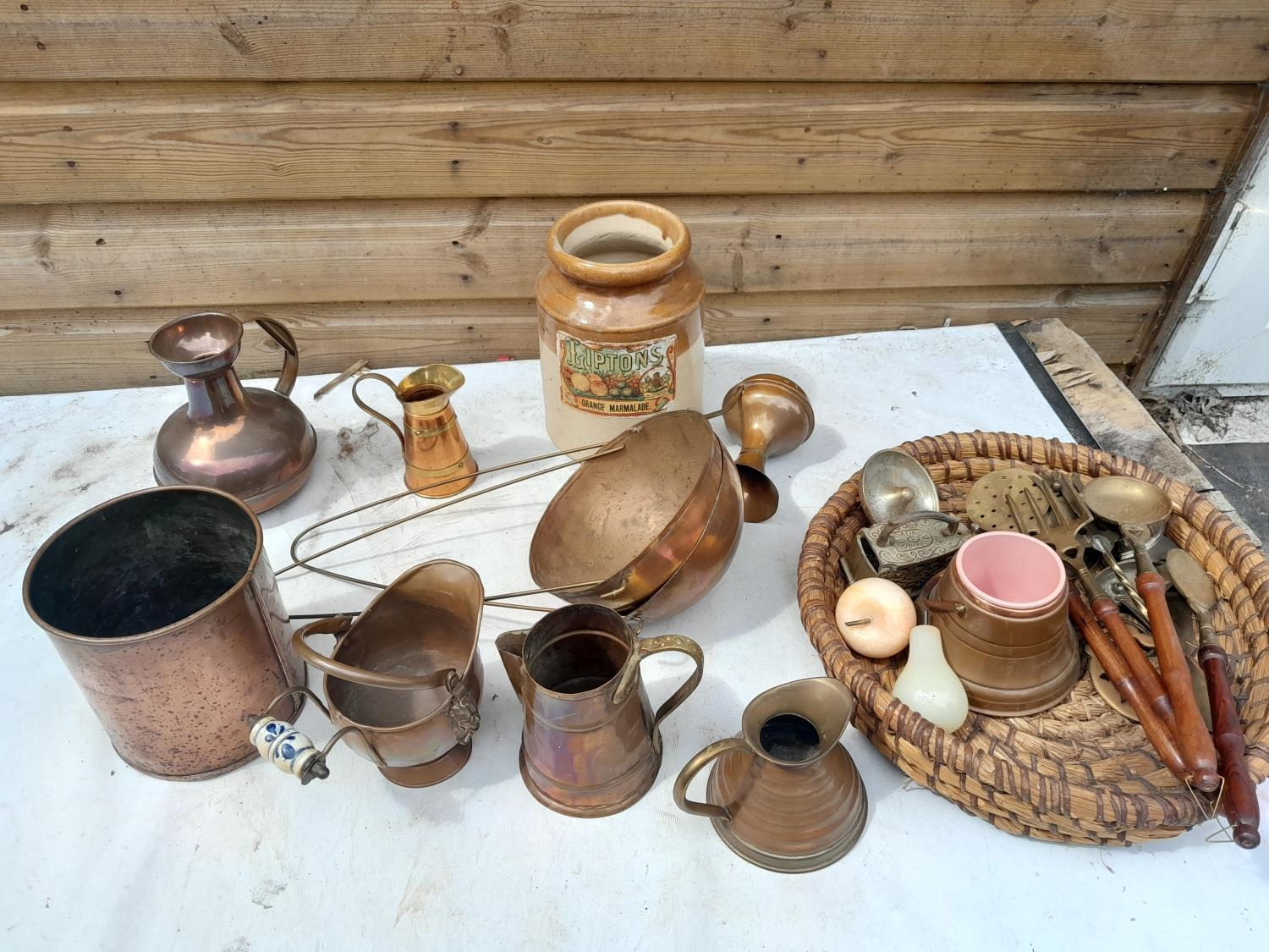 Box of vintage brass and copper ware