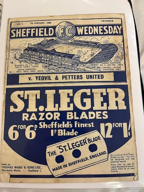 1938/39 Sheffield Wednesday v Yeovil & Petters United FA Cup 7/1/1939. Was a draw before Wednesday won the replay at Yeovil. Slight Tear in bottom corner and Marks on cover. But otherwise a good example.