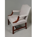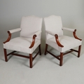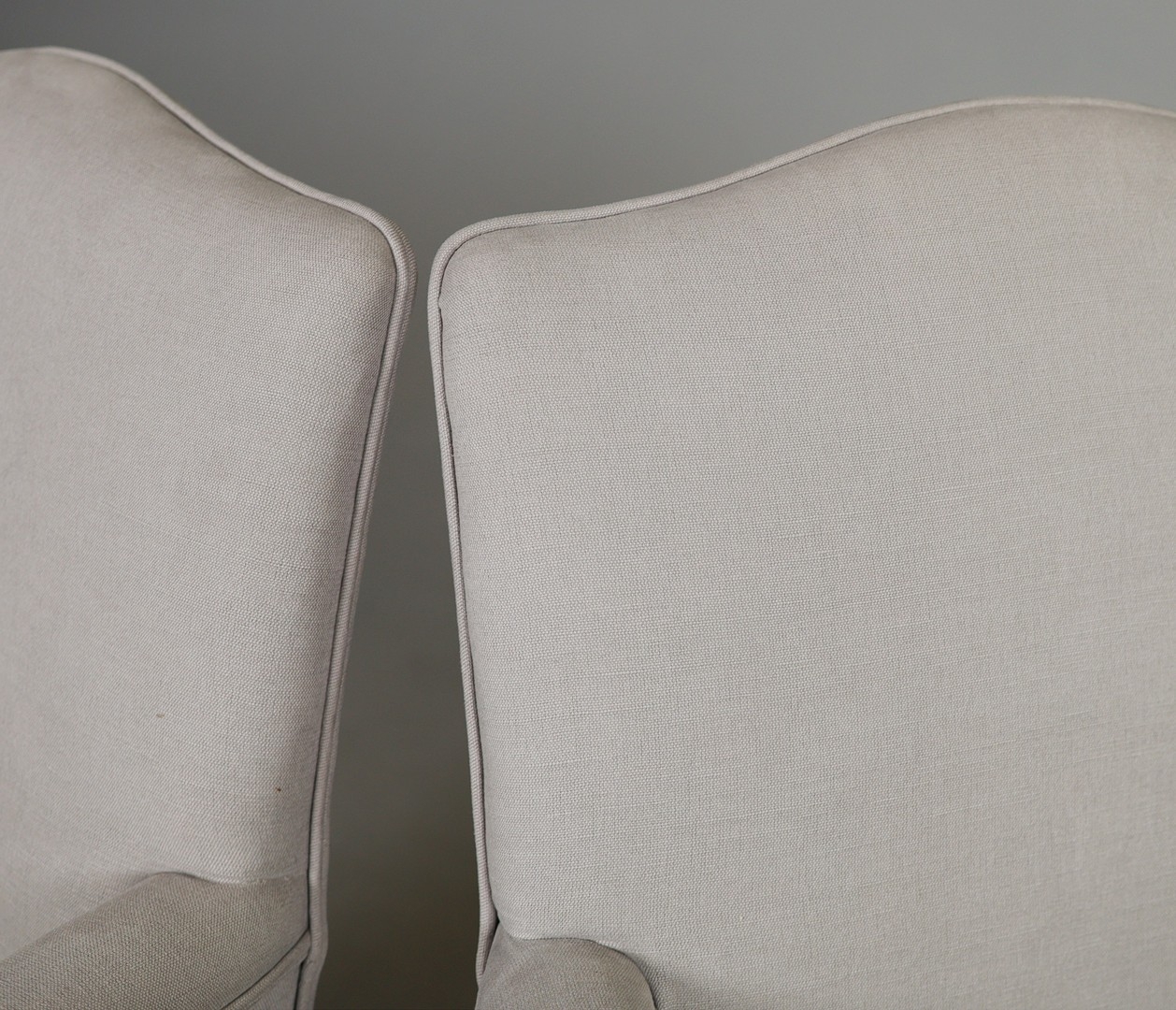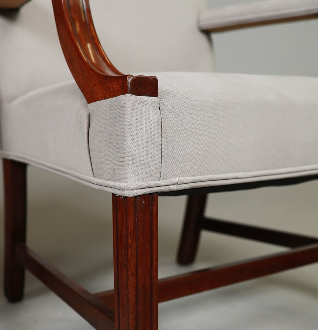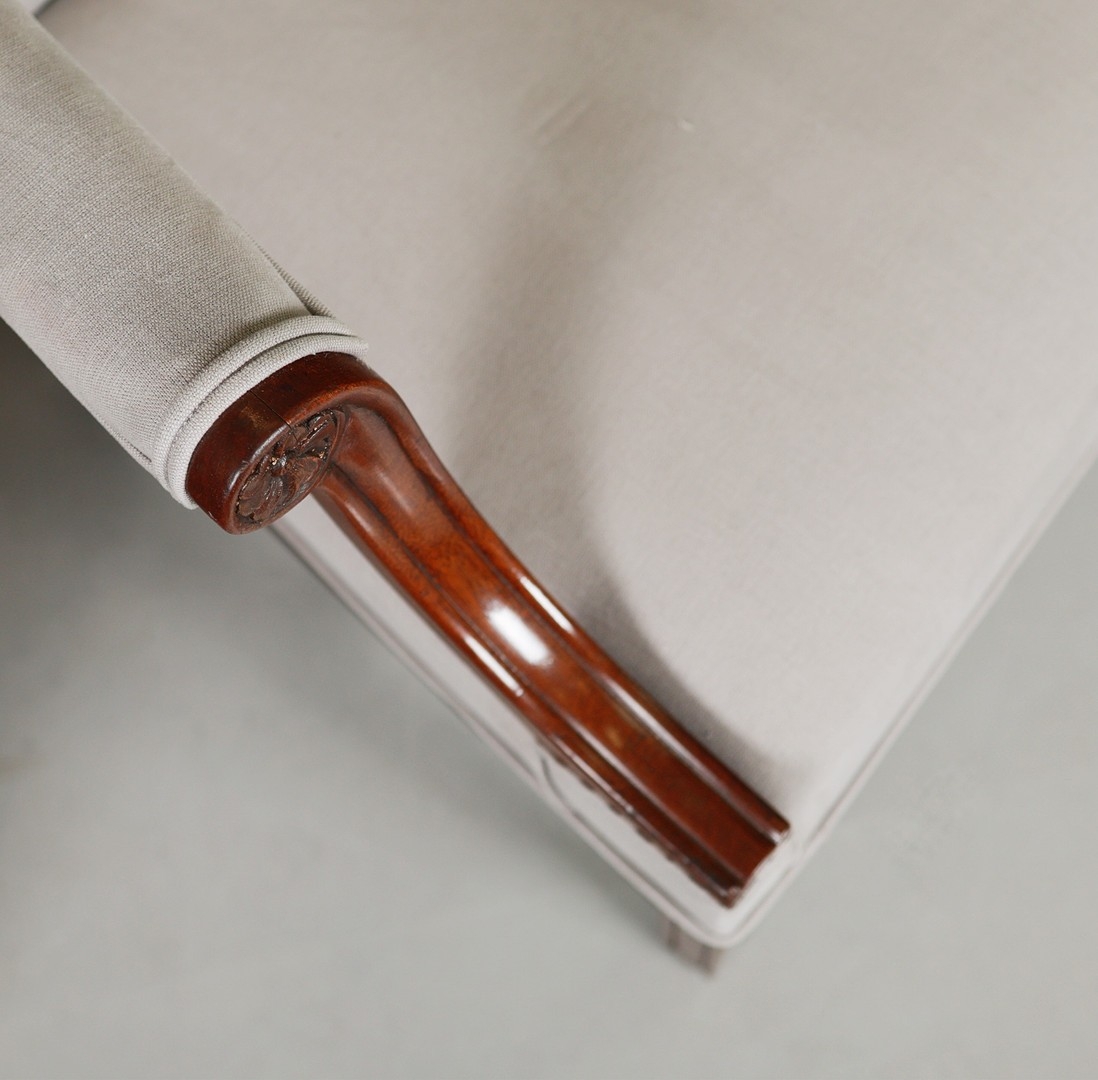 PAIR OF GEORGE III STYLE ARMCHAIRS (2). mahogany in grey linen, 95cm H x 72cm W x 70cm D.