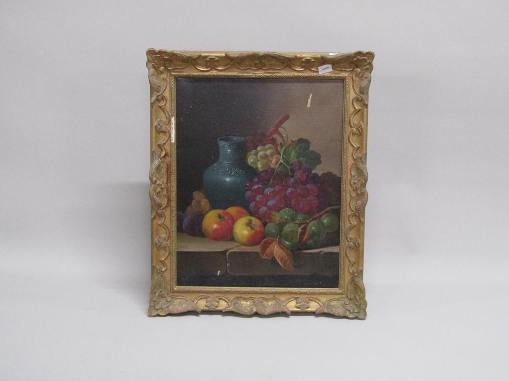 BALE, 19c STILL LIFE FRUIT OIL ON CANVAS GILT FRAMED, 49 x 38 cms