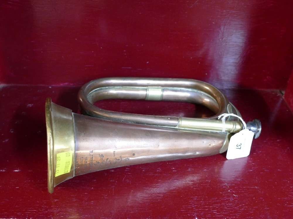 Copper and brass bugle by R.J Ward & Sons of Liverpool
