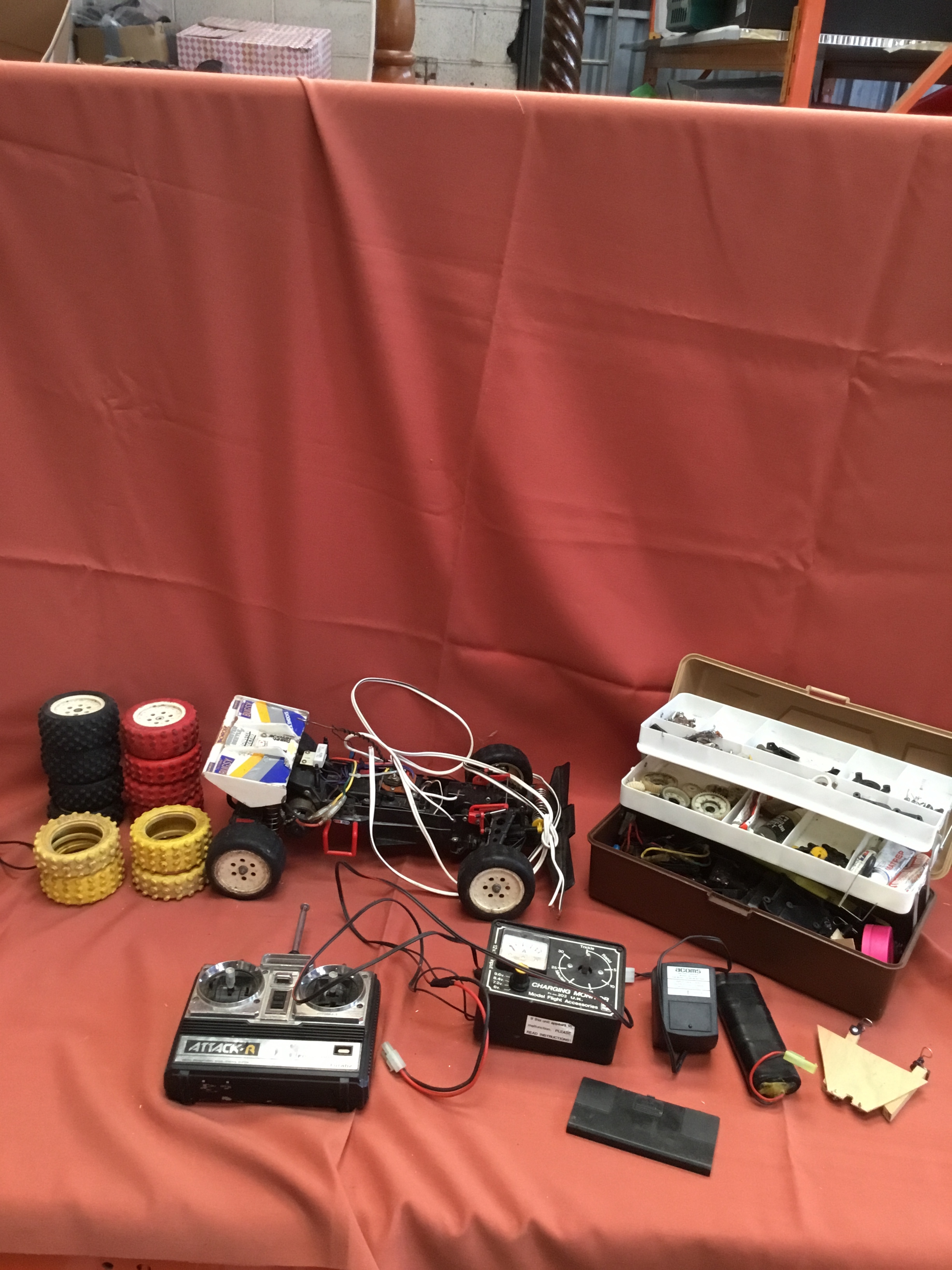Futaba FP-S148 remote control vehicle with lots of accessories in wheels, controller & box of all parts