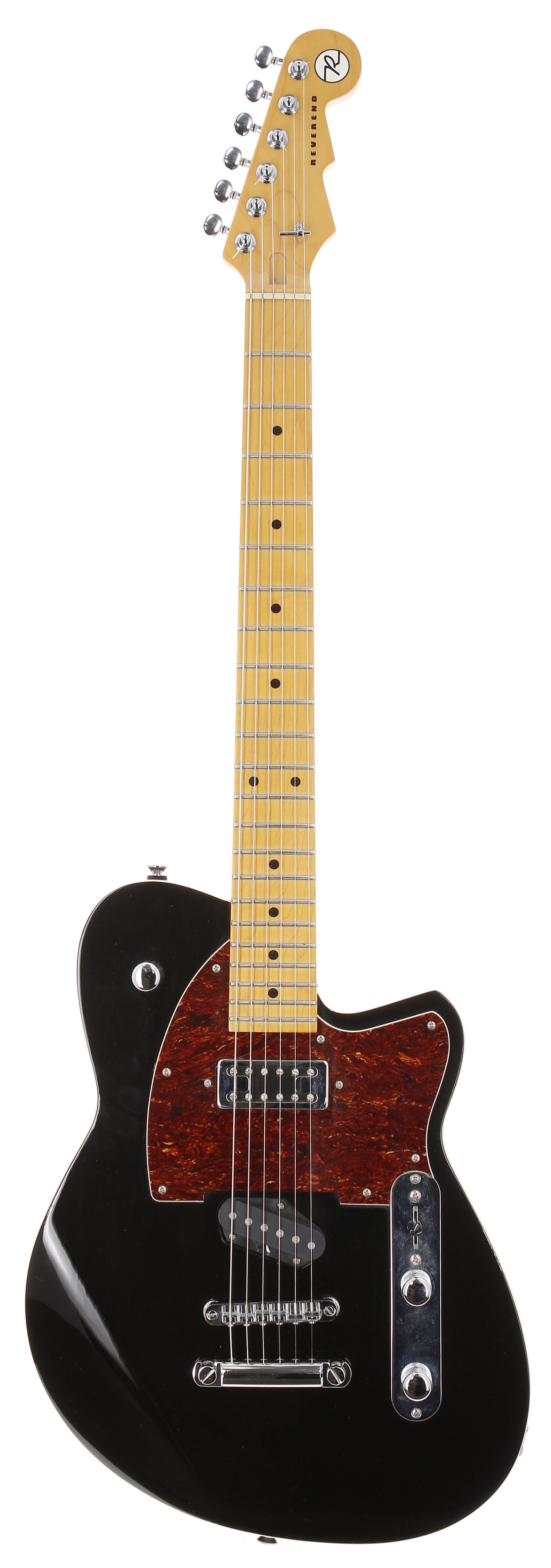 2017 Reverend Buckshot electric guitar, made in Korea; Body: black gloss finish, a few light surface marks; Neck: maple; Fretboard: maple; Frets: good; Electrics: working; Hardware: good; Case: original hard case; Weight: 3.56kg; Overall condition: good