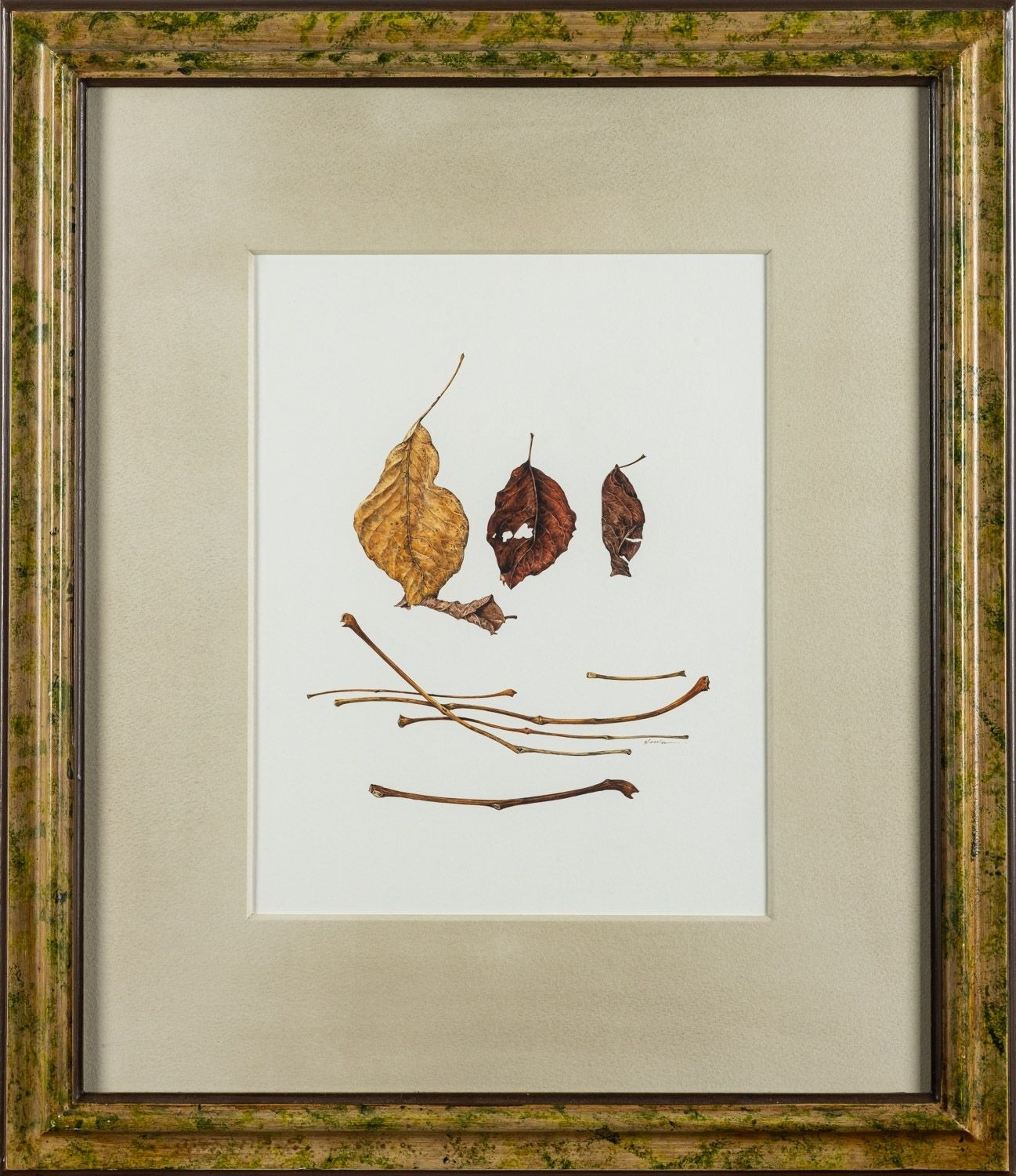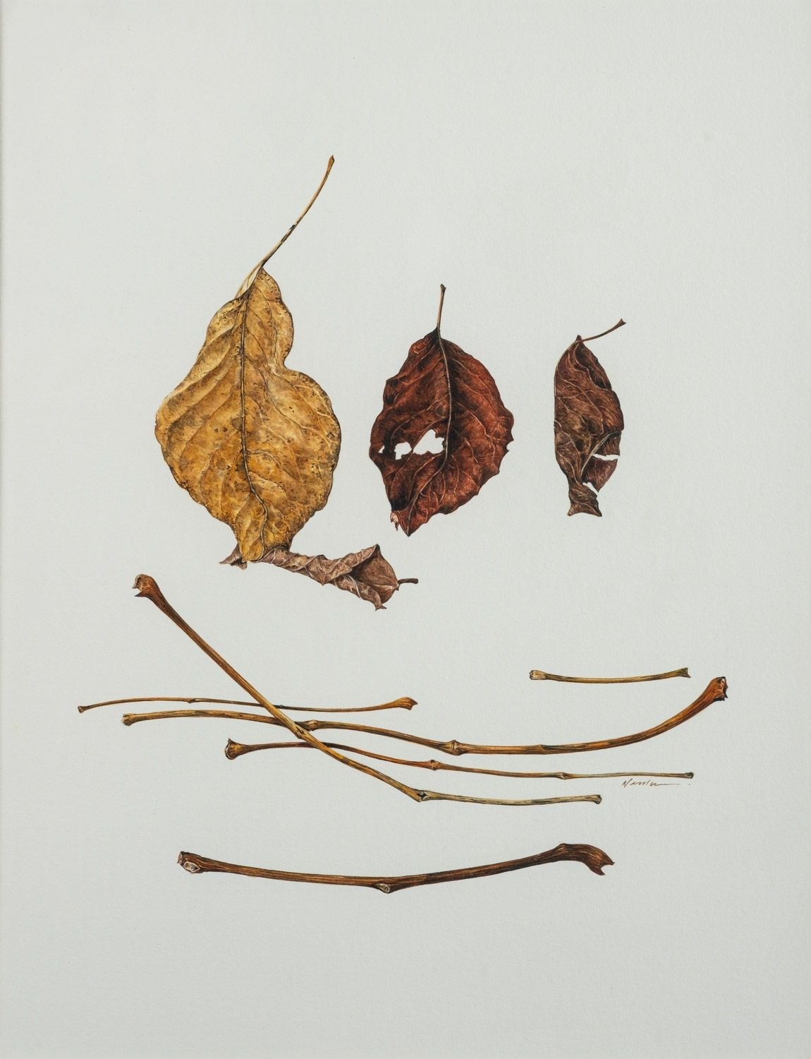 Kate Nessler (British, Contemporary) - Four Leaves with Stems - Watercolour - 29 x 22.5cm - 52 x 45cm - Signed lower right