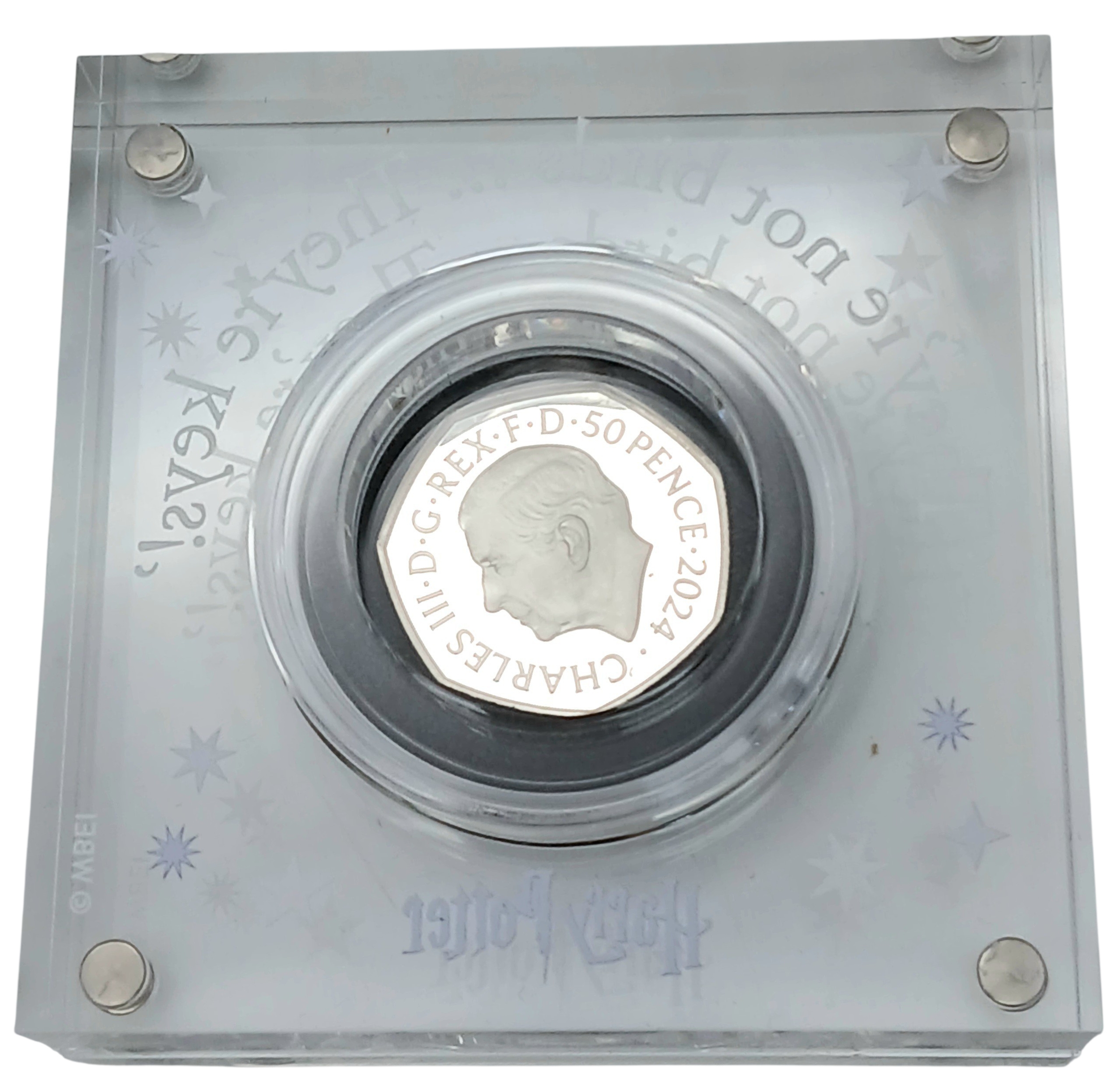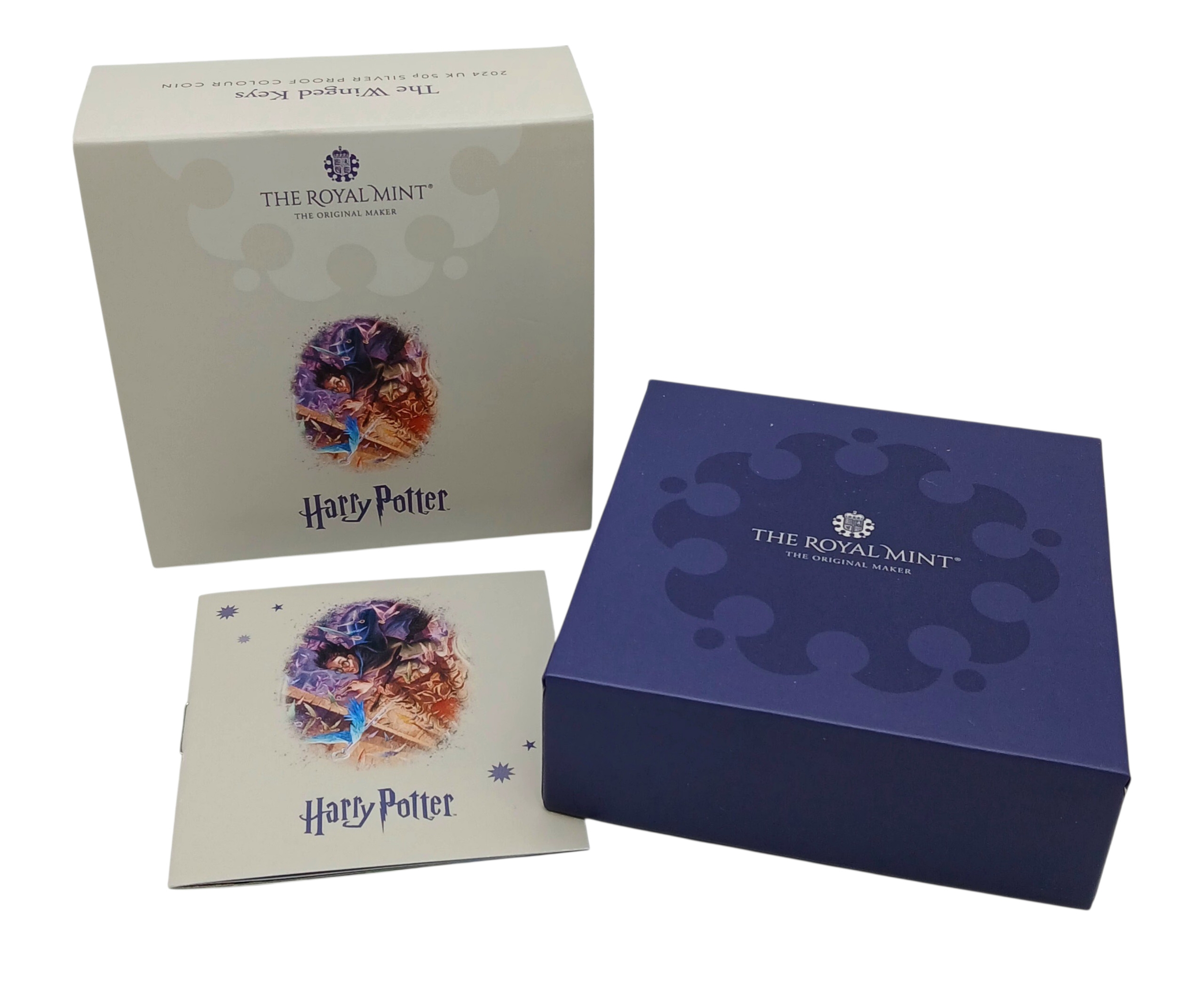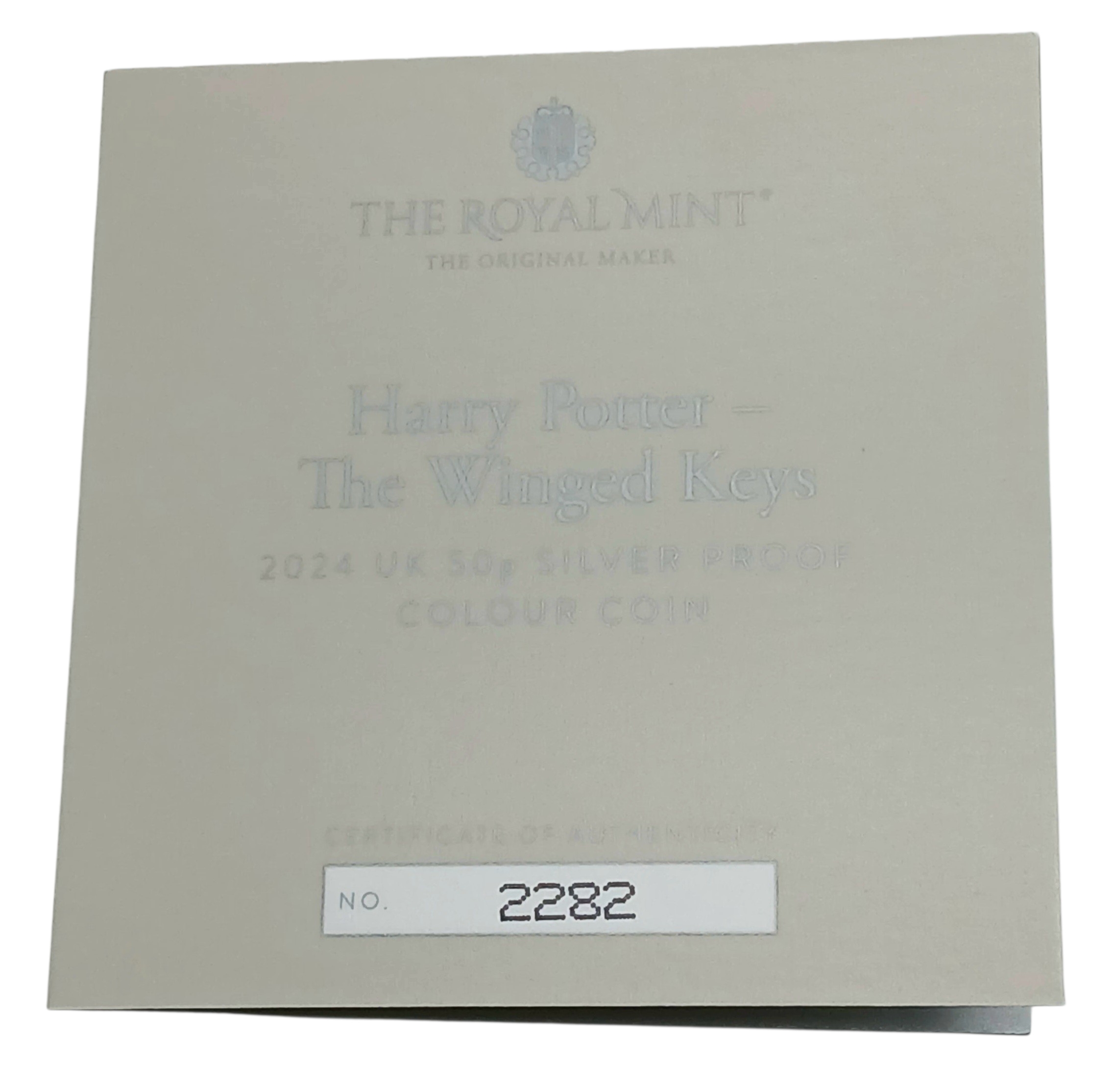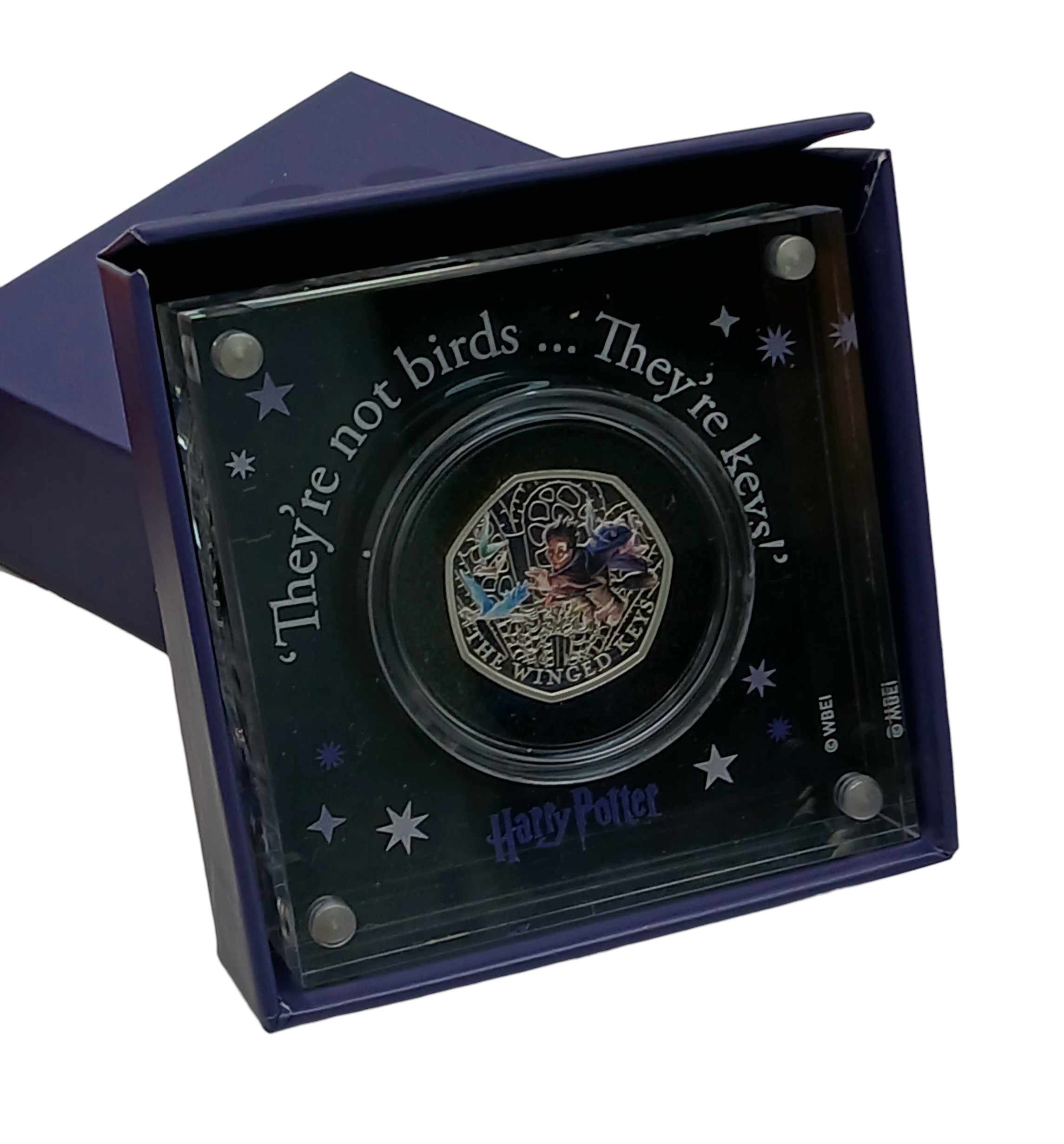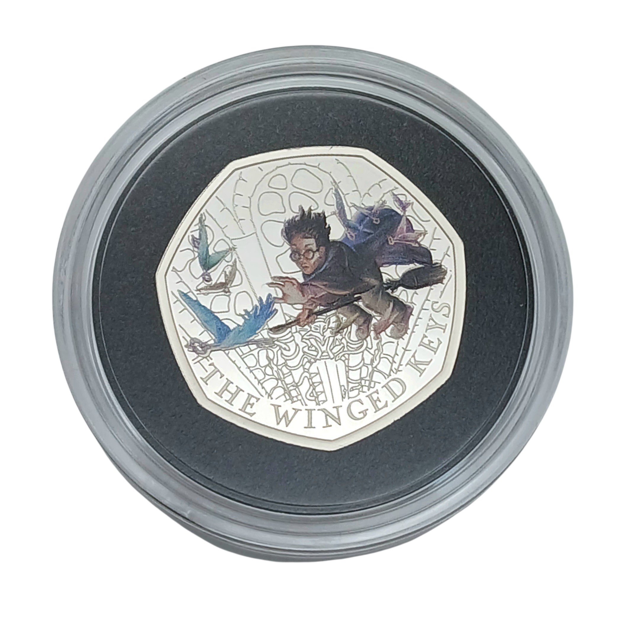 A Royal Mint Harry Potter - The Winged Keys. Limited Edition Sterling Silver Proof 50p Coin. Encapsulated with case and COA.