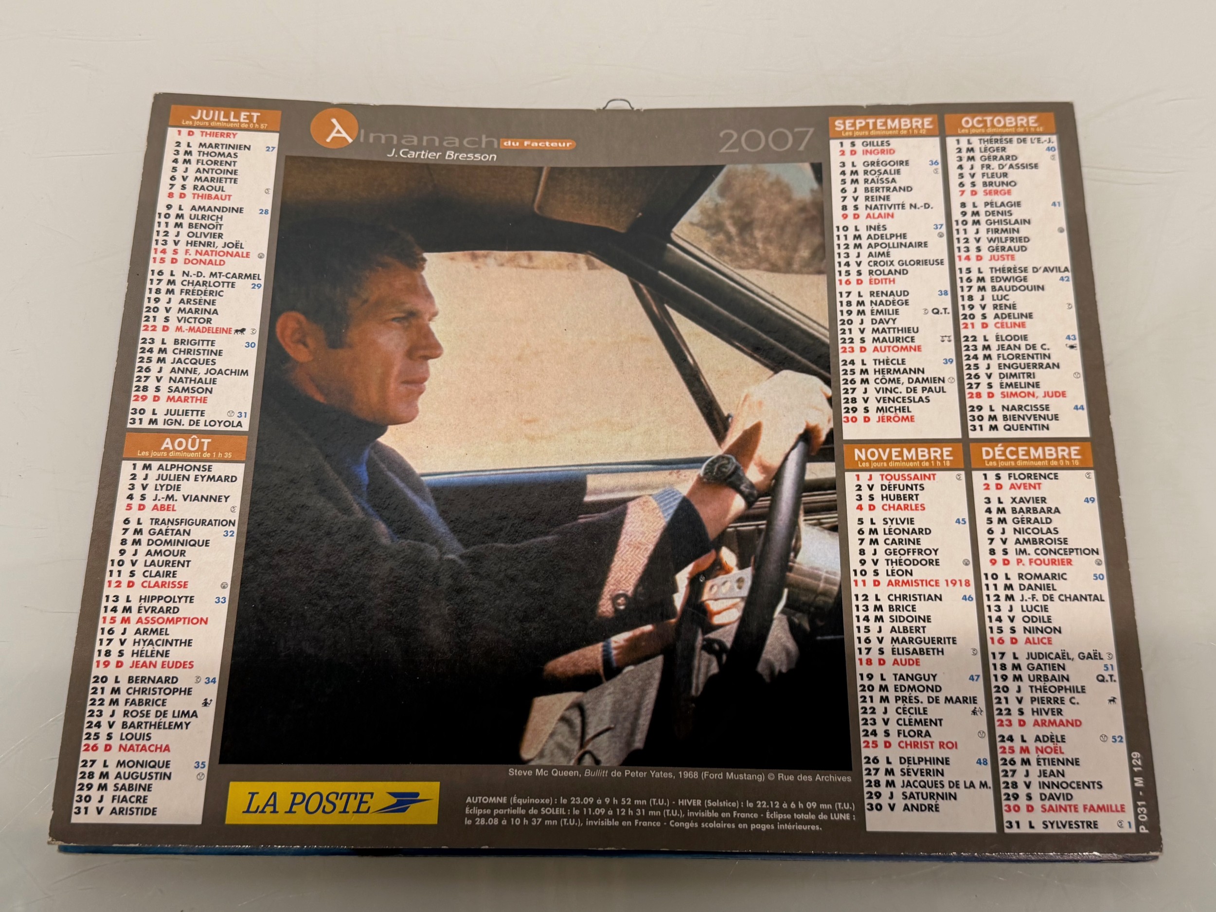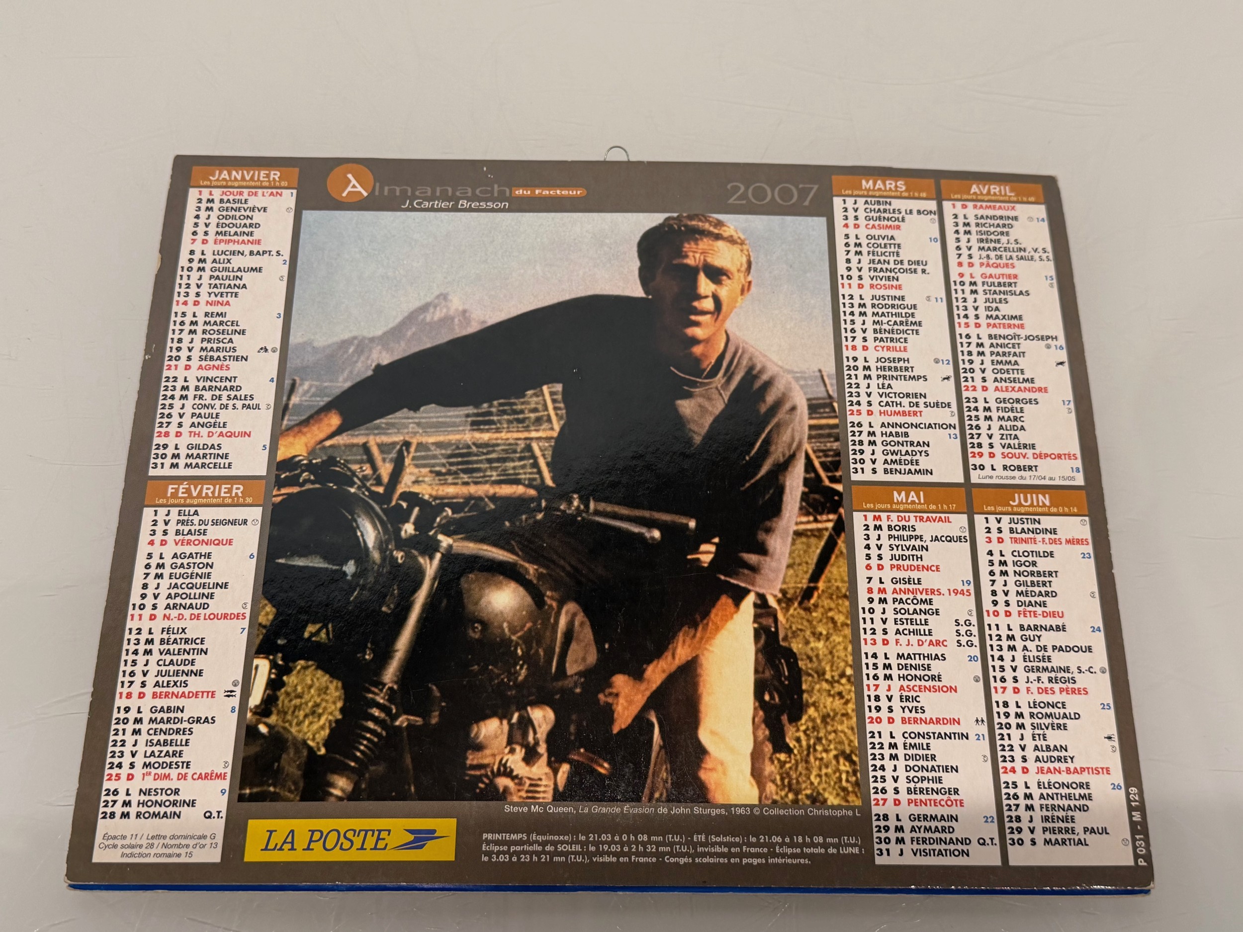 Ephemera, automobilia, Movie Stars, Steve McQueen themed calendar, illustrtaed with scenes from Bullet and The Great Escape.