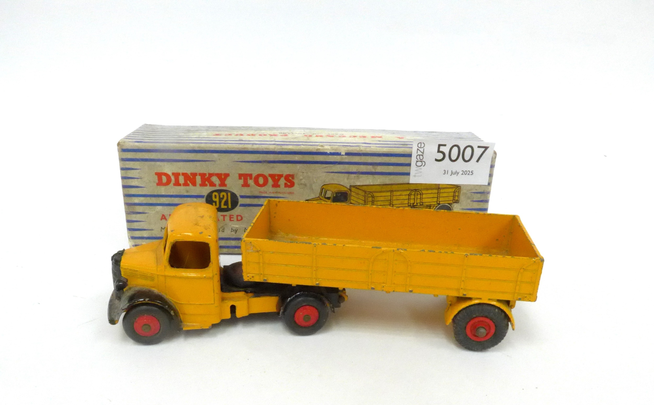 Boxed Dinky Toys 921 Articulated lorry in yellow, in played with condition, back of lorry a/f